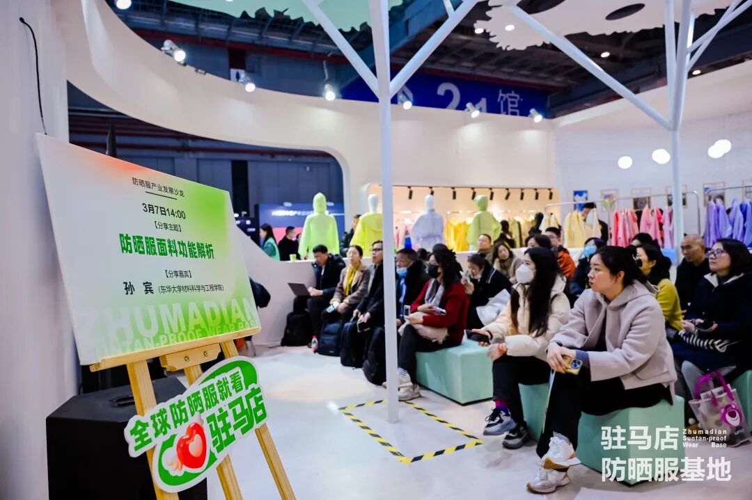 聚焦防晒服产业,河南正在聚力打造驻马店防晒服基地。在3月6日开幕的2024中国国际服装服饰博览会(春季)上,由河南省服装行业协会携手驻马店市人民政府、上蔡县、西平县,联合200余家驻马店防晒服基地共建单位打造的“驻马店防晒服基地”展馆正式亮相,吸引服装产业链上下游从业者前来咨询洽谈。活动期间,展馆举办多场场防晒服产业发展沙龙,全方位剖析防晒服产业发展未来。