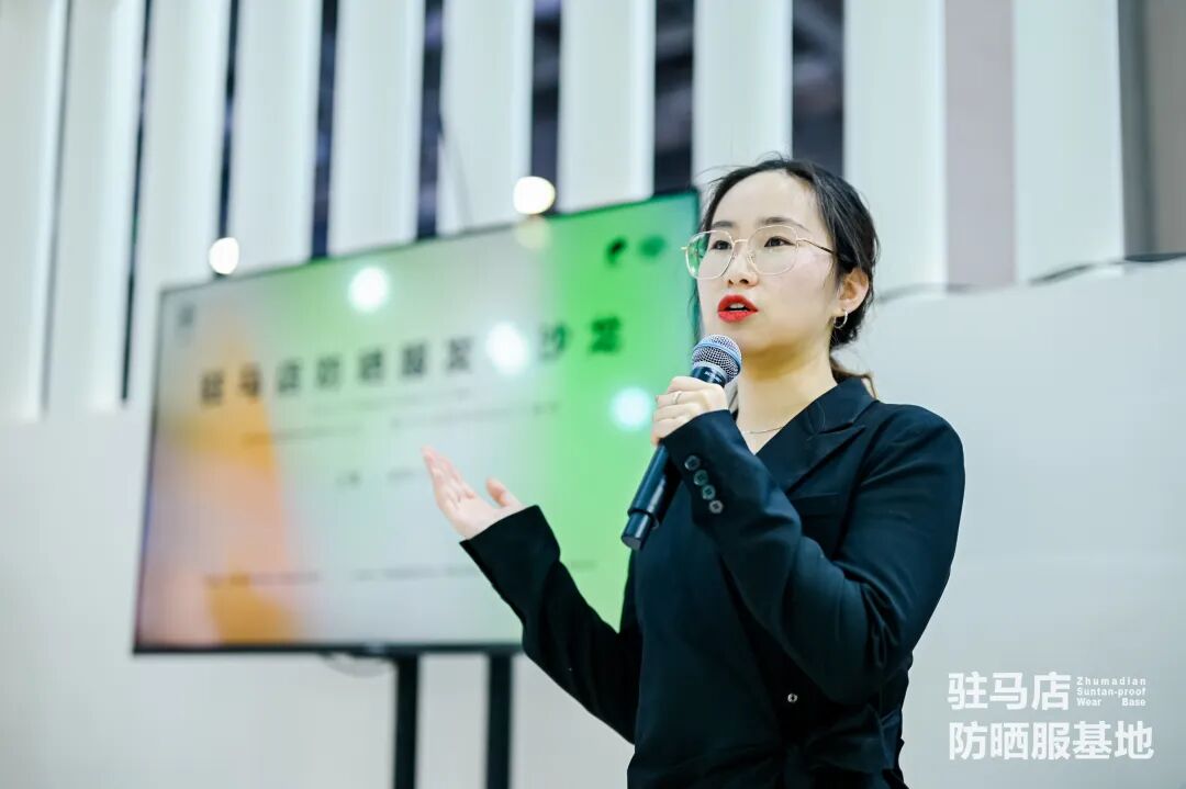 共助防晒服产业发展,搭建交流平台,3月6日,驻马店防晒服基地展馆邀请到POP趋势大运动板块主理人姜虹任做沙龙分享,发布防晒服趋势报告。