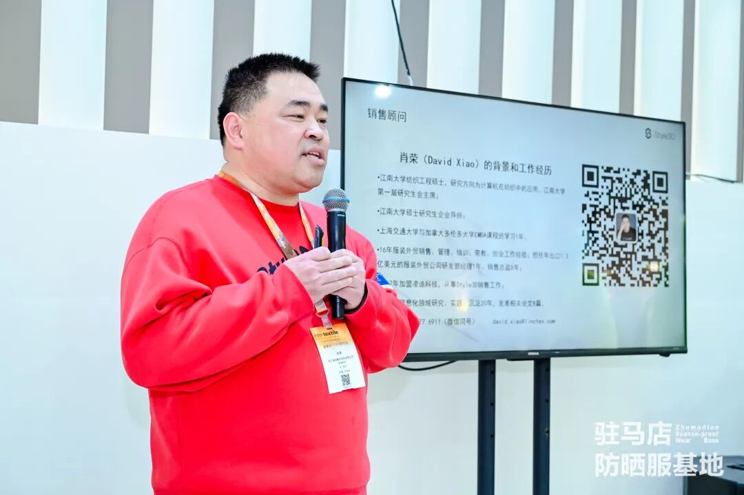 汇聚全国乃至全球资源,为驻马店防晒服基地建设出谋划策,共话防晒服产业未来发展,3月7日上午,浙江凌迪数字科技有限公司销售总监、江南大学硕士研究生企业导师肖荣受邀来到驻马店防晒服基地展馆做沙龙分享。他以“设计赋能防晒服产业”为主题,重点剖析了AI时代来临,服装服饰可借力AI赋能产业发展的思路。