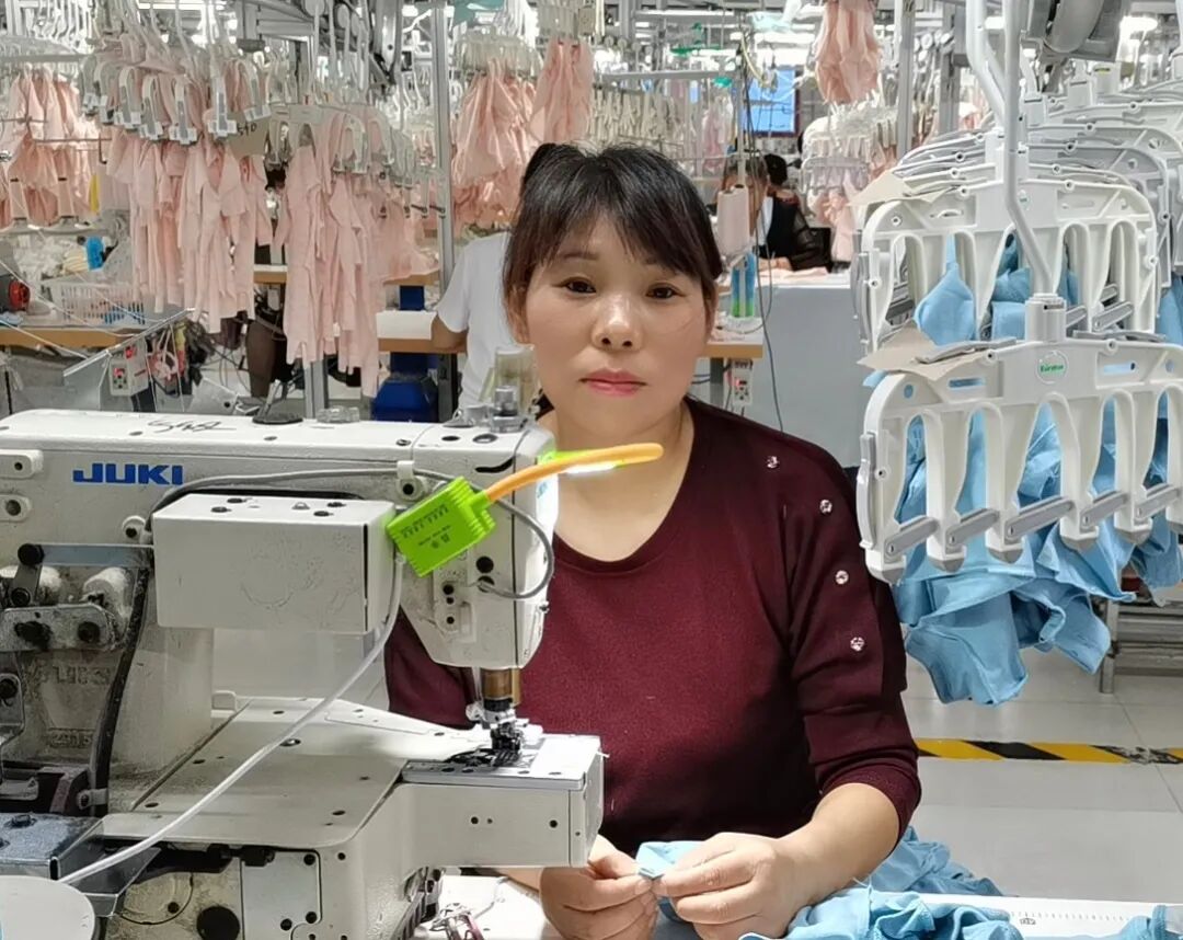 “我是魏娟,家住驻马店驿城区朱古洞乡,家里有5口人,大孩子已经毕业了,小孩子还在读初中。我从事服装行业已经15年了,服装是门技术活,想要做得又快又好需要时间的积累。正所谓干一行、爱一行、精通一行,这么多年以来,我一直很喜欢这个行业,我愿意在这份工作中花费时间和精力学习,所以我成长的很快,收获的也很多。”从魏娟的言语中,我们看到的是一个河南服装产业工人懂规矩、有技术、有工厂理念、质量概念的新时代产业工人淳朴、坚毅的新形象!