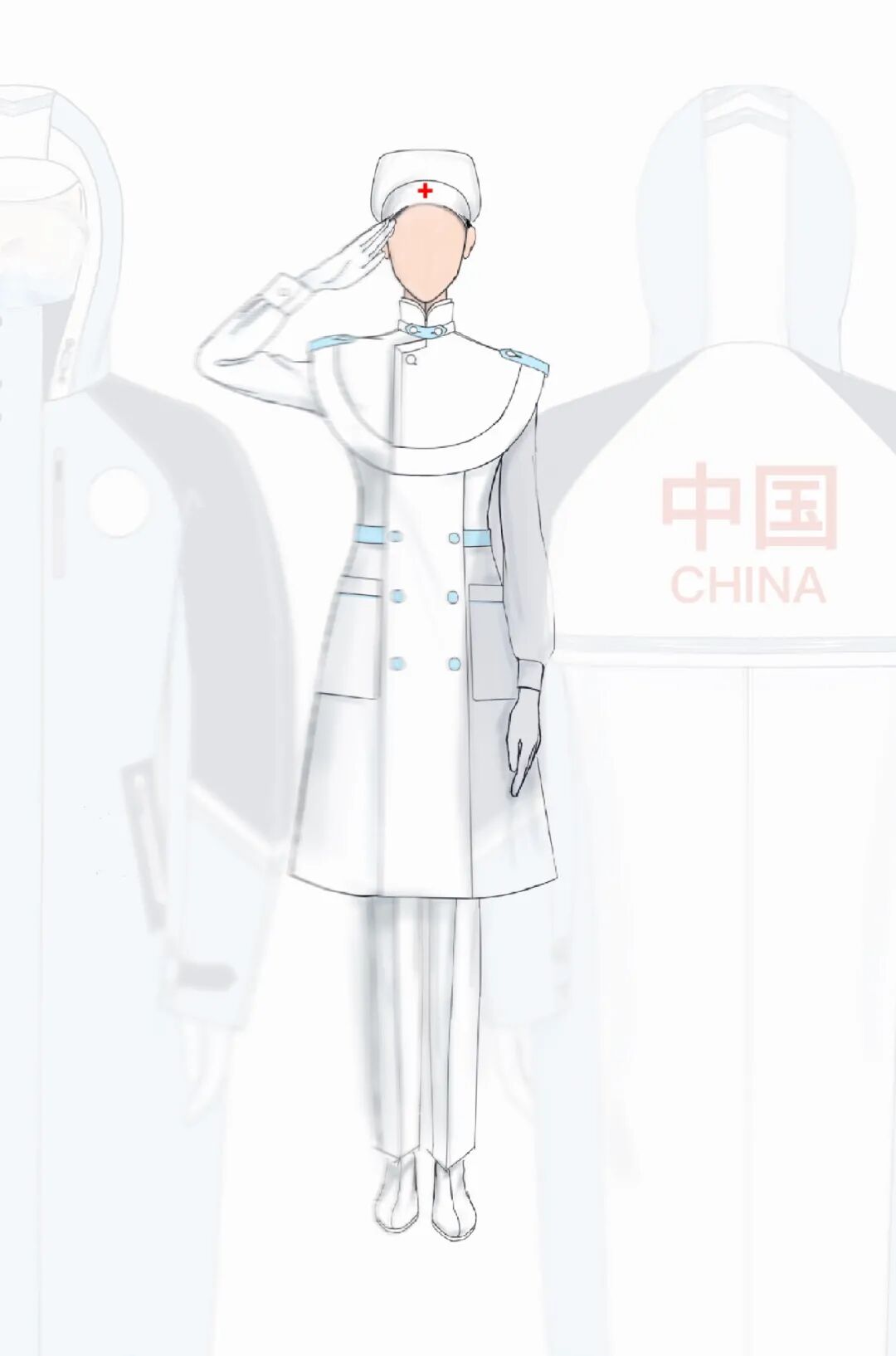 以中国式医护服装、医护礼服作为设计的重点,以中式立领、中式结扣子为特点,塑造具有中国式特色、端庄大气、高洁美好的医护形象,体现新时代医护工作者的精神面貌和防疫中国精神。