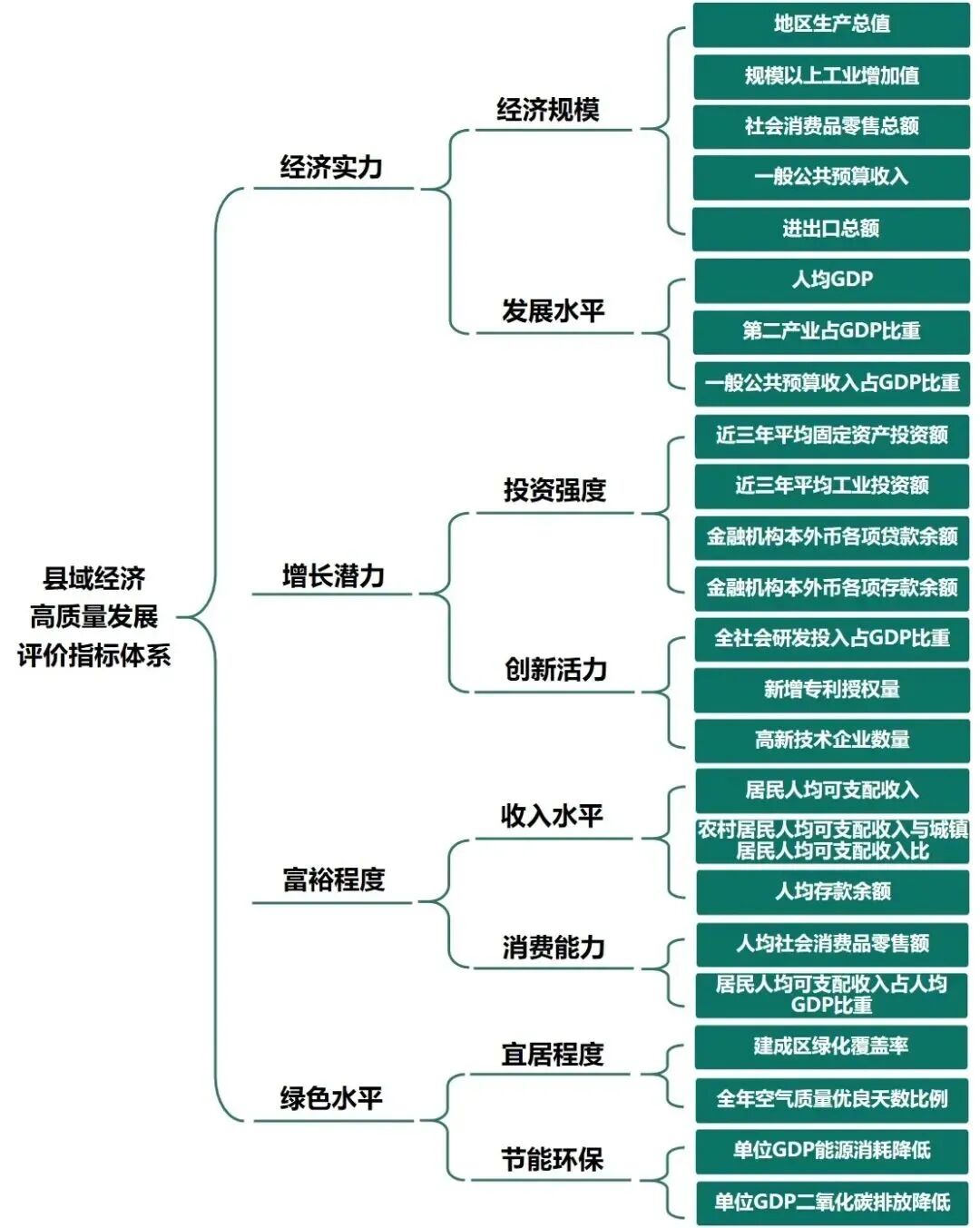 据悉,赛迪顾问县域经济研究中心围绕高质量发展主题,坚持“创新、协调、绿色、开放、共享”新发展理念,遵循科学性、系统性、权威性及可操作、可对比的原则,从经济实力、增长潜力、富裕程度、绿色发展四大维度构建了包含24个三级指标的县域经济高质量发展评价体系,最终形成2021年赛迪强县榜单。