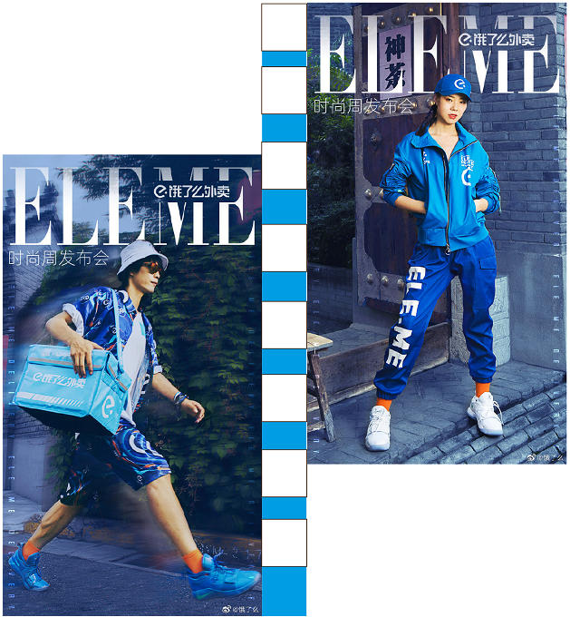 据饿了么潮牌主理人王婷介绍,蓝骑士潮服灵感来自于蓝骑士的工装风格,结合城市机能、国潮元素,颠覆传统外卖小哥形象。在服装材质上,ELEME采用了COATED RIPSTOP的梭织材料,保证了整体的防水透气特性。同时具有反光、警示、防护、便捷等蓝骑士装备必不可少的功能元素。