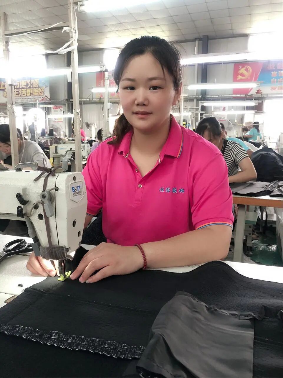 2015年由于家里有两个孩子还有老人,他们正是需要照顾的时候,我不得不放弃在外的工作,回到老家周口沈丘。2015年底,因北京城市规划建设及多种原因,我之前所在的工厂外迁,老板给我们几个河南老乡,工厂管理骨干开会、打电话,说准备带着长期合作的客户,把工厂搬到河南老家来,当时我非常兴奋,高兴的一夜无眠。我想,如果真把工厂安置在老家,我不但可以在家门口就业,继续干我最喜爱的服装工作,还能照顾老人和孩子。接下来,和周总商议后,我们说干就干,明确分工,找政府递报告,找领导谈场地,找厂房,做配套,紧锣密鼓加油干,不到半年,厂房(镇政府扶贫车间)、仓库、厨房、宿舍全部到位,佳依服饰有限公司终于在家乡落了根。