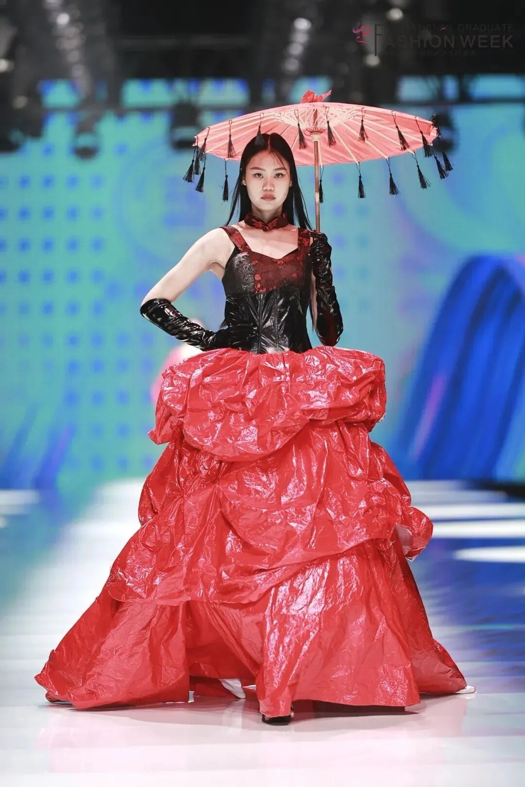 本次服装秀以传承非遗为主题,服装风格类型多种多样,涵盖创意装、礼服、时装等,设计师们从多种元素中汲取设计灵感,并在设计作品中运用了大量的再造手法以及非遗工艺,彰显了系列作品独特的风格与艺术价值。对我们来讲,也是一个很好的学习交流平台,在参与中提升自己。同时,也呼吁更多的设计师们从我们本土文化出发,在传承中创新,设计出具有浓郁特色的民族文化服饰作品。最后,希望在校的学弟学妹们能有更多更好的设计作品展现给大家!