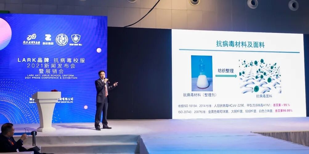 为承担起国企的责任担当,浙纺集团研发出“LARK防病毒校服”,联合中科院研究员李毕忠博士、“童装之父”孙海涛设计师等数十位专家,开发出BCNT纳米材料抗病毒技术的校服。
