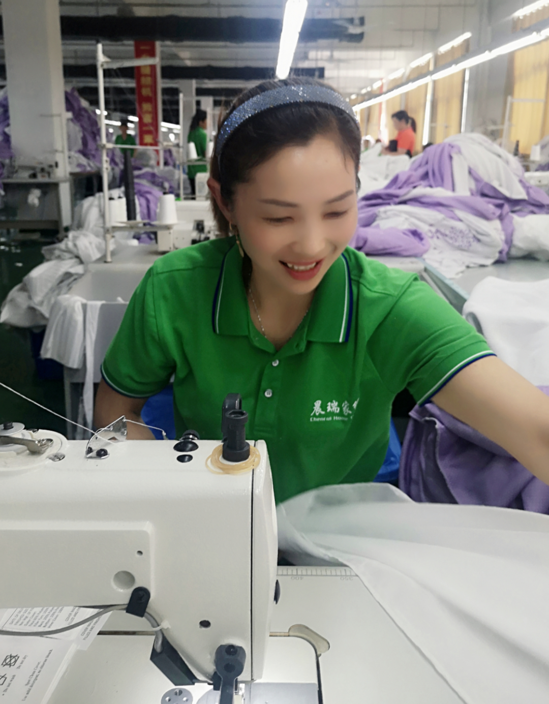 走进淮滨临港国际服装城的晨瑞家居实训基地,映入眼帘的是车棚里一排排摆放有序的电动车,厂里的负责人告诉我这都是距离工厂比较近的工人上下班骑的,说明下班能回家团圆,就近就业真好。