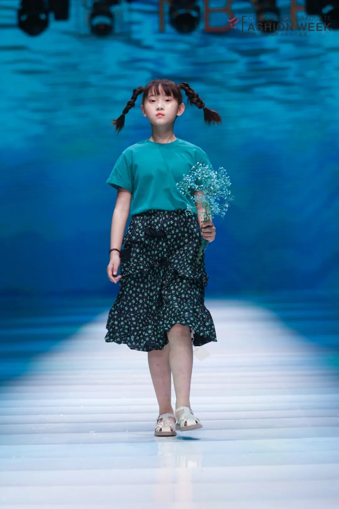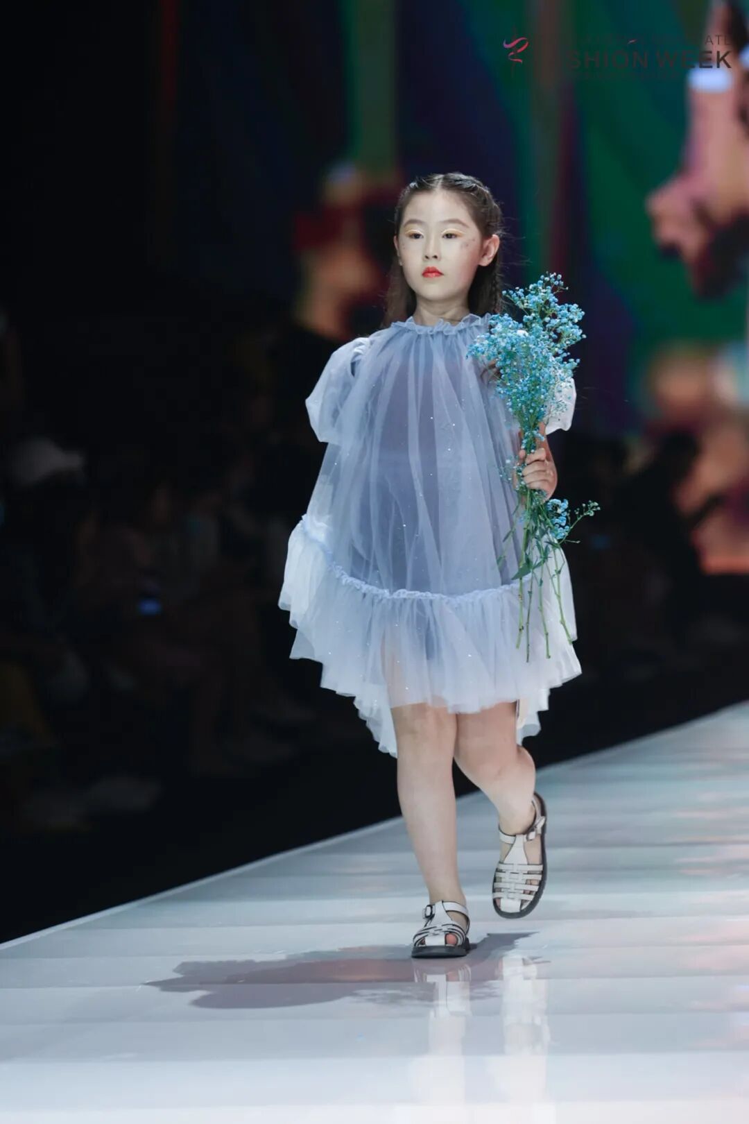 一个个手捧鲜花的小超模们,收起了嘻嘻哈哈的日常形态,以职业、专注的态度来迎接这场盛事的开演。眼神、走位、定位……自信而优雅,每个细节都彰显出了专注、专业的时尚态度。