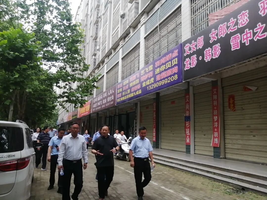 5月28日下午,在光山县委常委、副县长程建辉的带领下,县市场监督局、县羽管委、消防、城管,紫水街道办事处等相关部门对城区老旧羽绒市场进行综合执法检查,严厉打击无证无照经营、安全隐患、占道经营、污染环境、影响市容市貌等问题商铺。