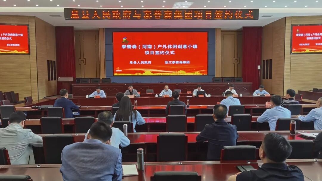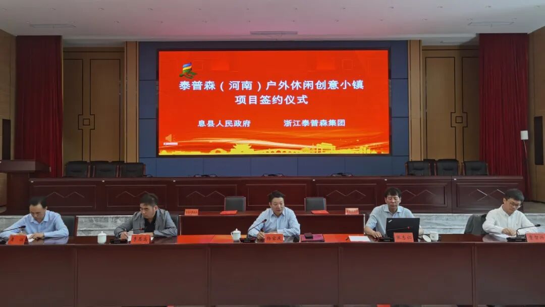 近日,泰普森(河南)户外休闲创意小镇项目签约仪式在息县会议中心成功举行。息县县委书记金平,县长袁钢、县领导霍昱廷、杨成、夏映金出席。仪式由金平主持。