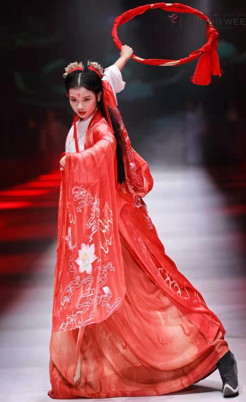 5月27日,河南艺术职业学院戏剧学院&河汉涓埃以一场独特的汉服表演秀引爆了2021中国(河南)国际大学生时装周的秀场。此次发布会共发布了封神系列、婚嫁系列、青白蛇系列、仙侠系列、唐风系列、翟衣系列六大系列二十多套汉服服装。