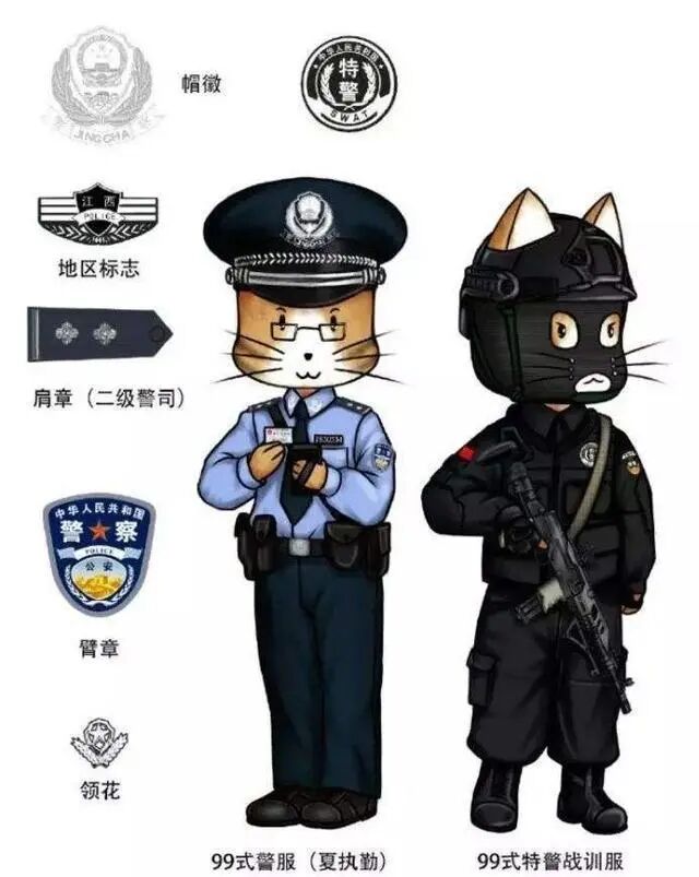 四、意志感强。99式警服在衣领部位和胸前分别加装了领花和胸徴,并且在胸徴中用文字反映了警察的隶属,增加了我们对警察身份的了解程度。