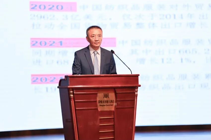 中国纺织品进出口商会副会长王宇做“纺织品服装出口形势分析与展望”主题演讲,他表示,现阶段,纺织服装业步入创新发展时期,企业行业越来越重视跨境电商业务的发展,积极寻求外贸新增长点,一是加大研发设计及品牌培育力度,推动外贸高质量发展;二是加强内部资源整合,完善产业链供应链配置;三是内外贸并举,构建新发展格局;四是数字化赋能产业,推进数字化、信息化、智能化改造升级。