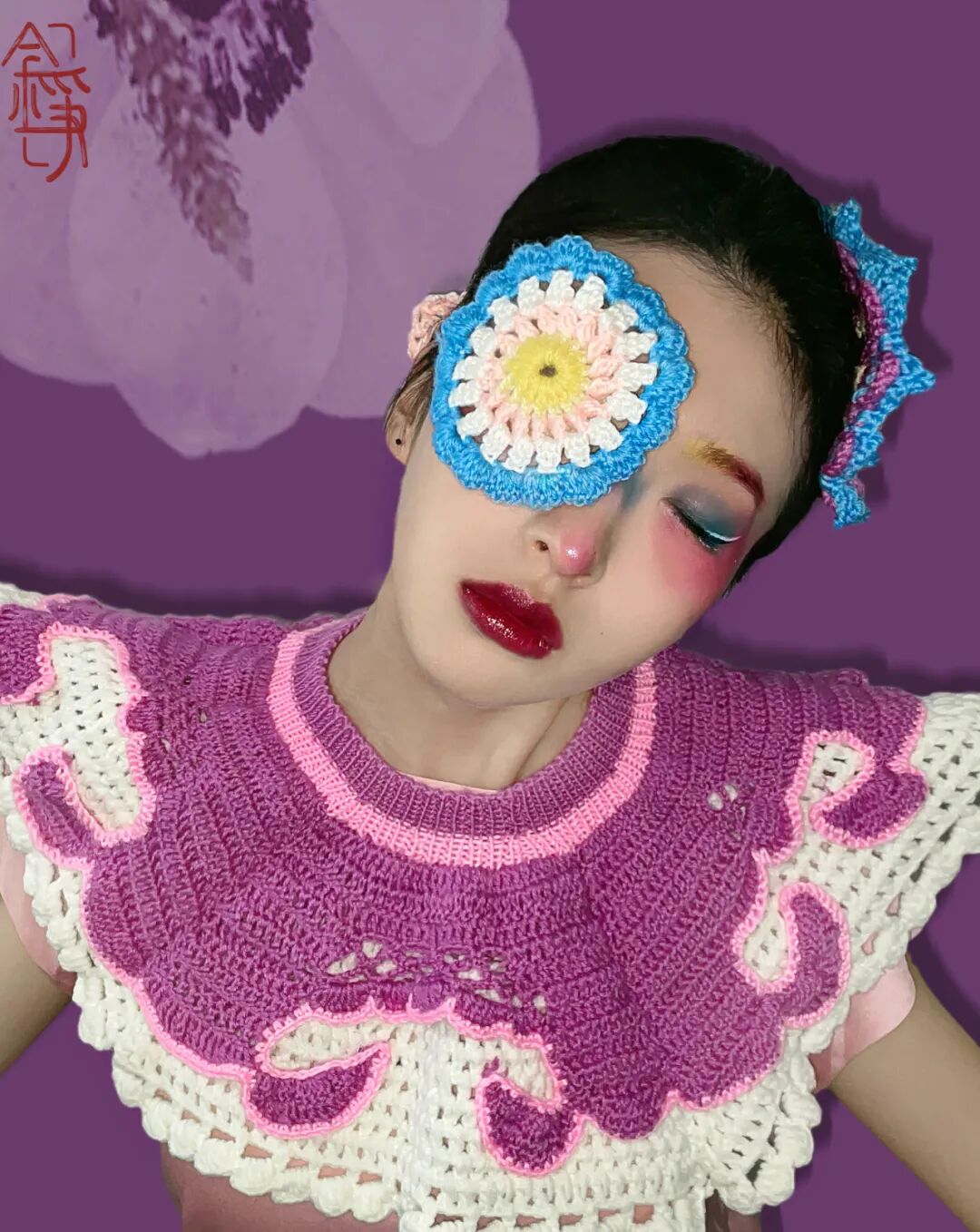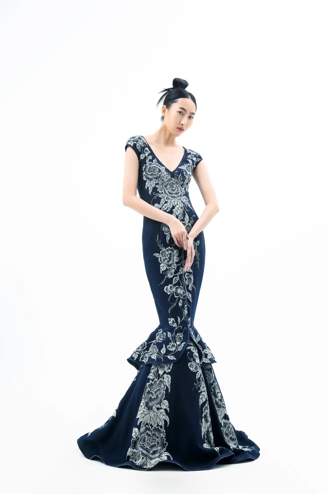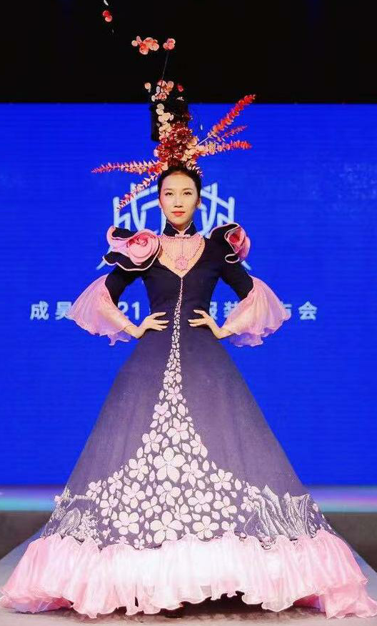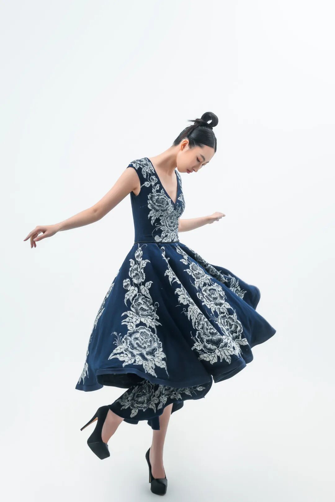 设计师运用十二花神的纹样做成衣服,倡导大家即使在再恶劣的环境下也依然要像花朵一样绽放。作品以非遗蜡染技艺为核心,打破传统的蓝底白花的视觉效果,加入了红、黄、绿、粉等色彩与草木染的碰撞,分别呈现五彩缤纷的十二月令花。