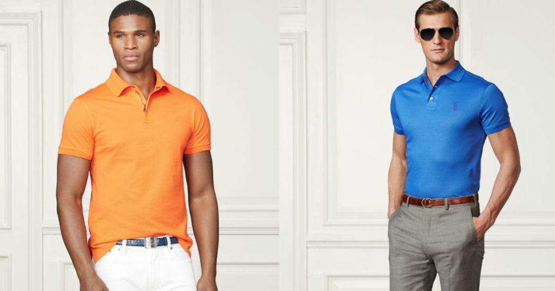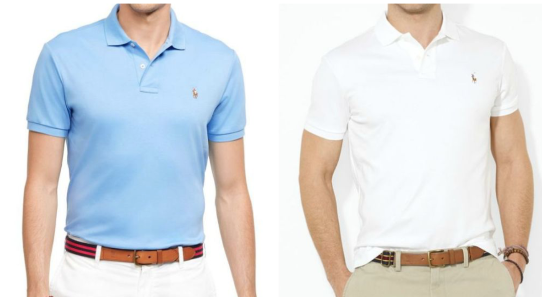 纯色 Polo 衫容易搭配。明亮一点的浅色,如浅蓝、浅紫,包括白色,这种我们称之为“清爽色”,建议搭配浅色裤装。