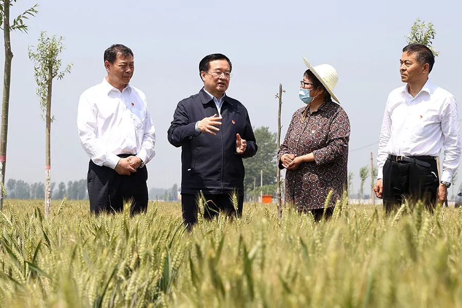 王国生和滑县基层党员干部群众座谈。共同学习习近平总书记重要讲话和指示精神。滑县县委书记陈忠汇报了粮食生产、农业发展情况,种业公司负责人赵秀珍介绍了推广良种的经验,王国生说,种子是农业的“芯片”,农业强种子要先强,要加大种源“卡脖子”技术攻关力度,选育更多符合河南农业发展实际的“当家”品种,提升现代种业发展水平,牢牢掌握粮食安全主动权。他强调,要坚持藏粮于地、藏粮于技,以科技自立自强为支撑,不断增强农业抗风险能力、提升现代化水平,让越来越多农民挑上“金扁担”。合作社负责人杜焕永、魏成显谈了通过专业合作社带领群众脱贫致富的做法,王国生指出,要大力培育发展新型农业经营主体,增强对农户的引领、带动和服务能力,让更多小农户融入现代农业发展大格局,实现农业提质提效、农民增产增收。