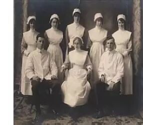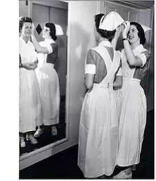 20世纪初(1900年),护士服仍然带有修女的着装色彩,但她们所戴的面纱已经不是延续修女的习惯,而真的是出于卫生的考虑:为了防止长发落下,需要把头发高高束成一个髻,用帽子或面纱完全遮起来。