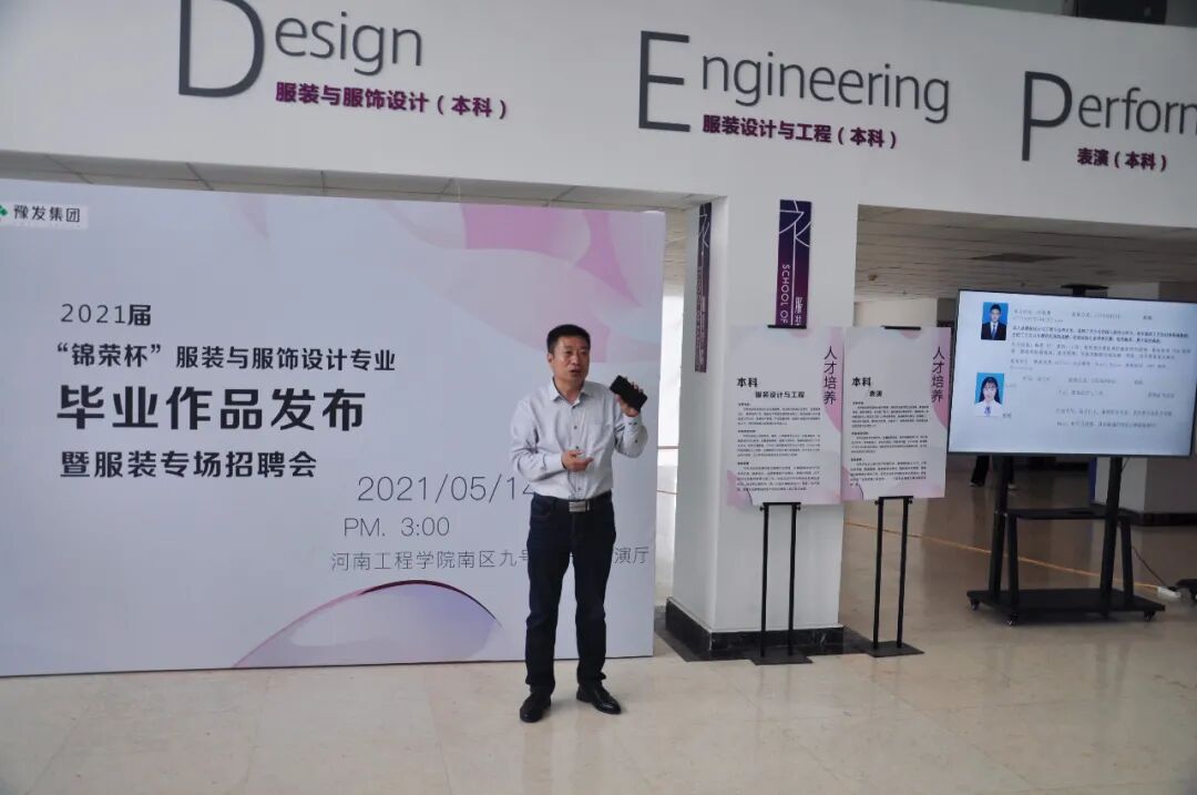 2021年5月14日,河南工程学院服装学院举办2021年校企互动人才交流暨优秀毕业作品发布会。郑州兴依璐服饰有限公司、郑州渡森服饰有限公司、河南纽伦钱塘服饰有限公司等数十家服装服饰类企业到场选聘千里马。几百名新型优秀实用技术人才像香饽饽一样被企业争抢。