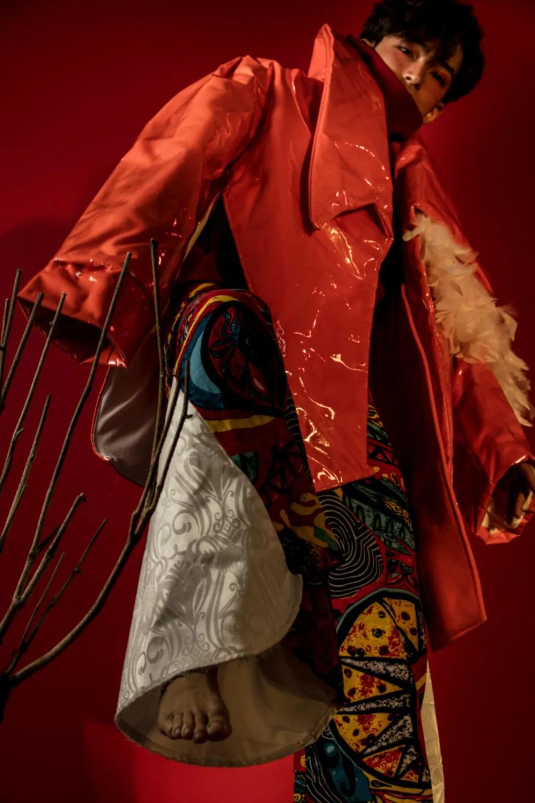 *设计要素:服装的设计从配饰中选择藏银,工艺上运用了少量的扎染以及民族印花面料。