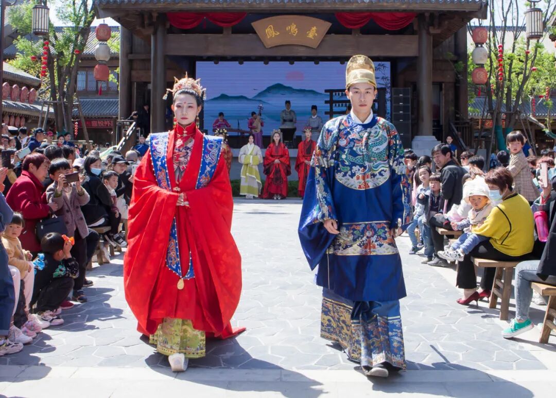 模特们身着周、汉、唐、宋、明等历代华服,再现中华民族服饰和礼仪之美。