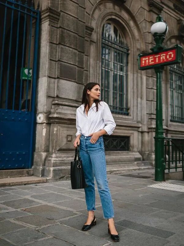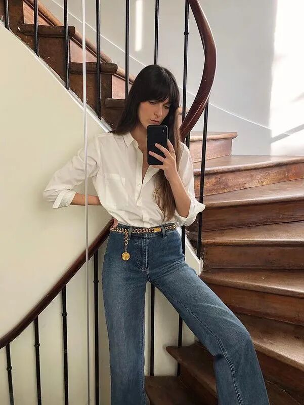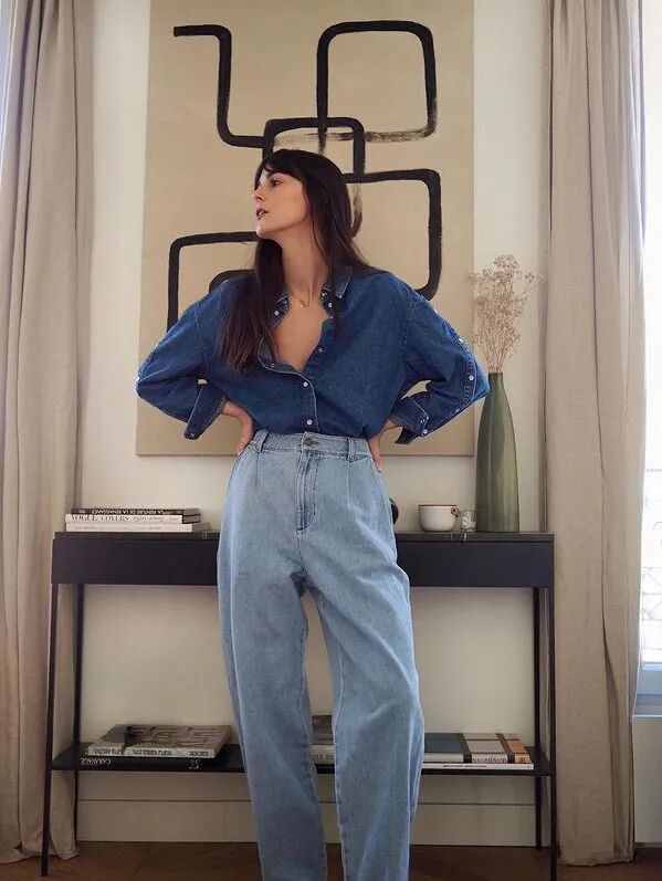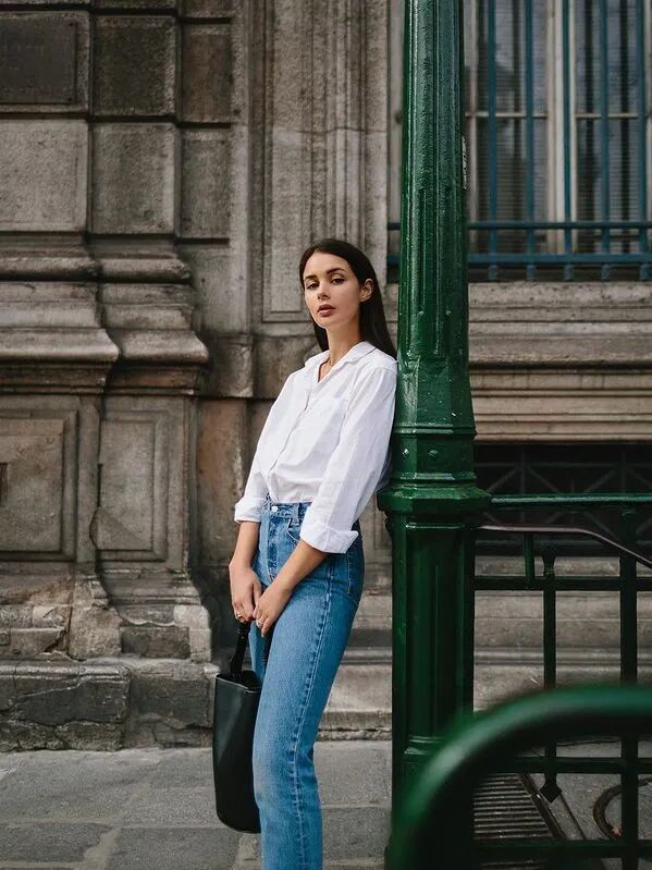 同样是来自法国的时尚博主Marielle,也是个衬衫+牛仔裤的热衷者。