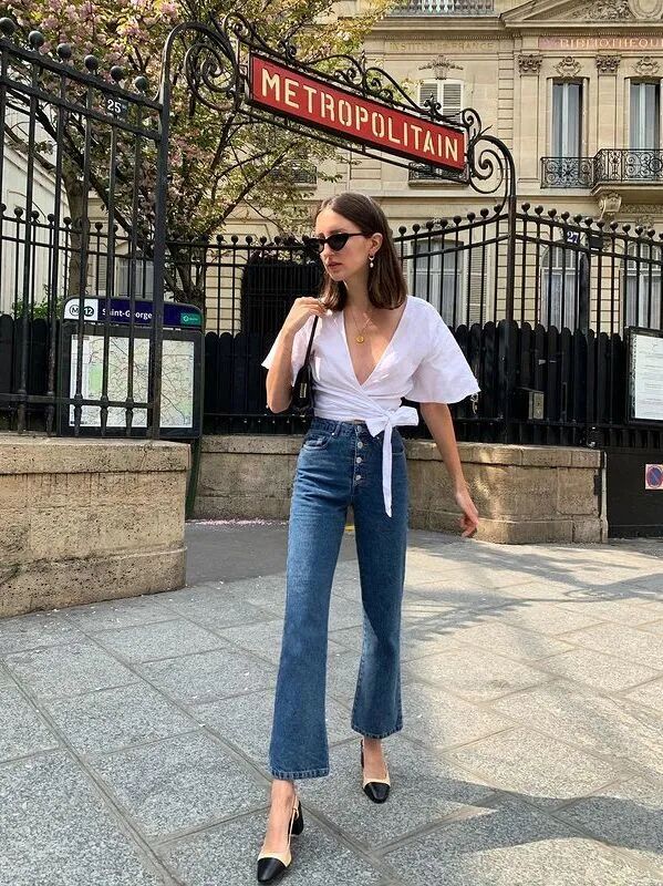 而高腰裤子的意义,就在于能够调节上下身的比例。妥妥的将衬衫穿出优雅和轻盈感。