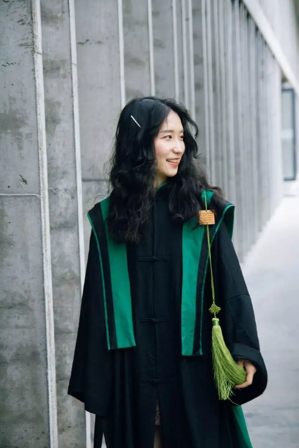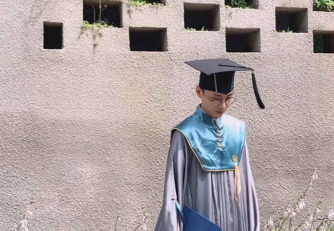 硕士服取“如水在渊”的玄青色