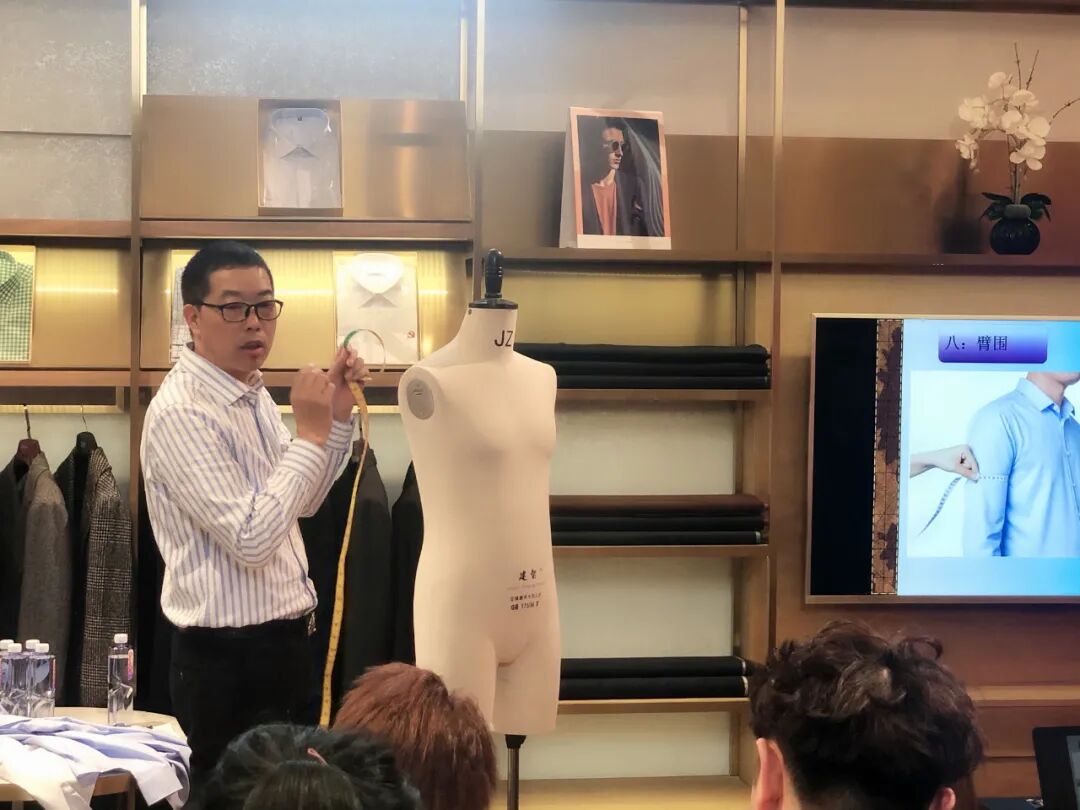 制版大师张彦亭老师针对《高级定制服装人体测量技术》进行了详细的讲解。人体测量技术决定着服装的稳定性、舒适性和美观性,张老师现场展示如何精准测量,让大家深切的体会到服装“以人为本”的设计制作理念。