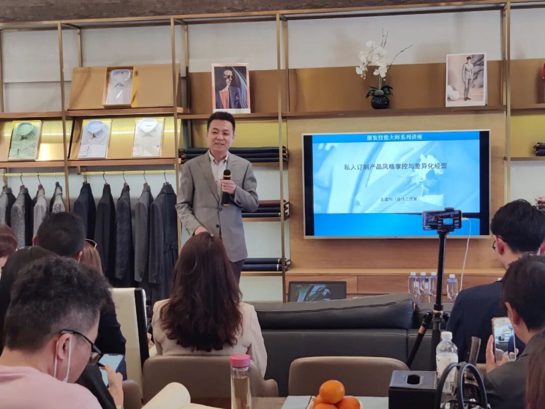河南服装设计大师王建伟教授就《私人订制产品风格掌控与差异化经营》进行了精彩的分享,深入浅出的讲解了西式礼服的分类、女士礼服的等级与差异化、西装的设计风格等,同时提出了未来定制业的发展趋势:未来定制业还将进一步洗牌,定制与成衣界限会更加模糊,线上线下更加融合,东方美学持续深入人心。