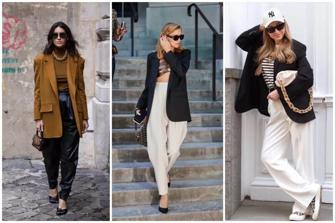 看过了短裤搭配,拖地长裤也不可错过。一条恰到好处的宽松长西裤可以打造出令人意想不到的视觉效果。