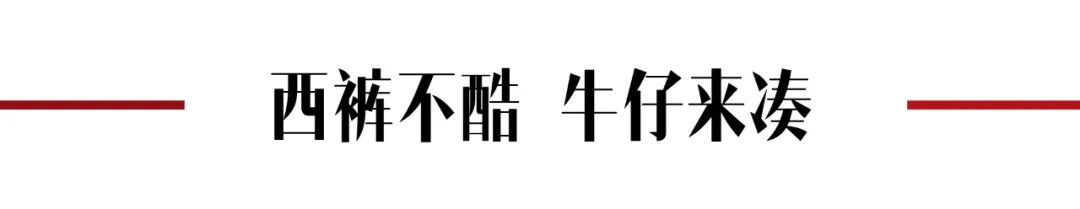 说到西服与西裤的搭配,怎么能少了牛仔元素呢?将一向象征着休闲舒适的丹宁面料与各式西服相结合,定能塑造出令人眼前一亮的混搭套装。