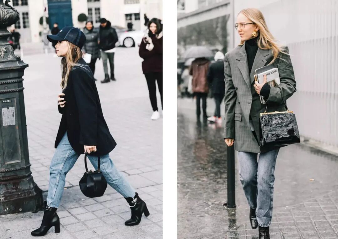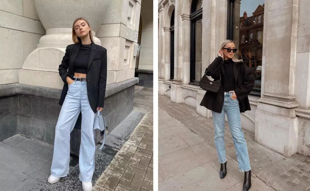 谁说基础款单品穿不出新意?一席简约黑西服搭配一条阔腿或直筒牛仔裤,轻轻松松营造出高级感。值得注意的是,一条腰带或是一只墨镜的巧妙搭配都有可能成为整套look的点睛之笔。