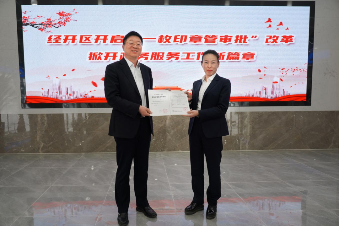 4月25日,随着新乡经开区第一个“行政审批专用章”的盖出,经开区正式启动“一枚印章管审批”改革,标志着新乡经开区行政审批改革又推进了一大步,区党工委书记刘思江向申请人发放了加盖经开区第一枚“行政审批专用章”的证照。