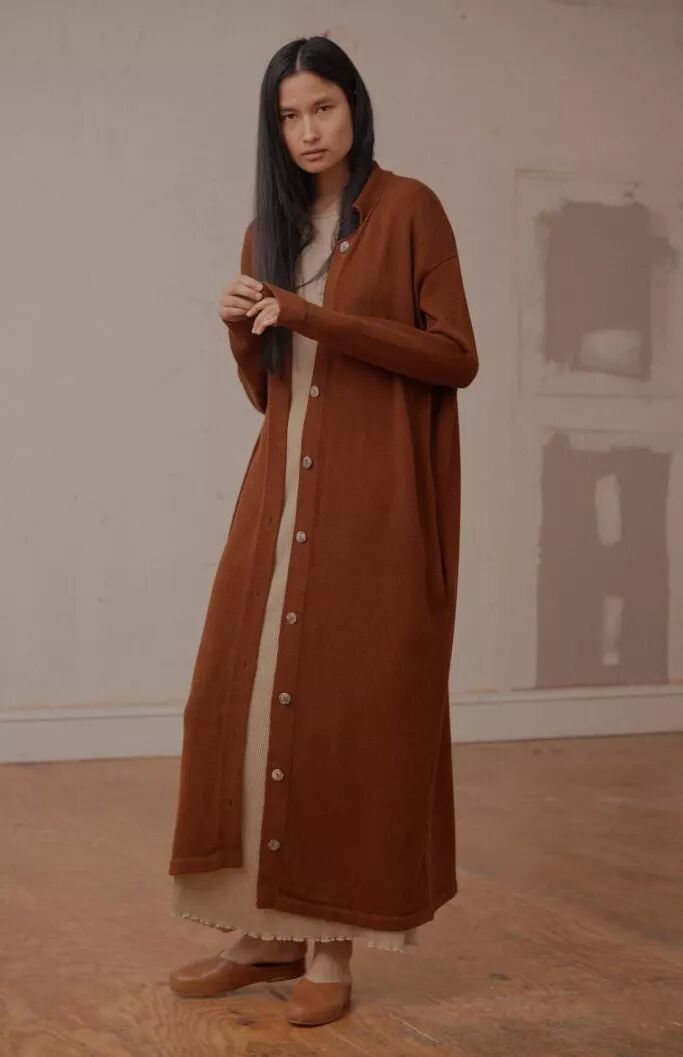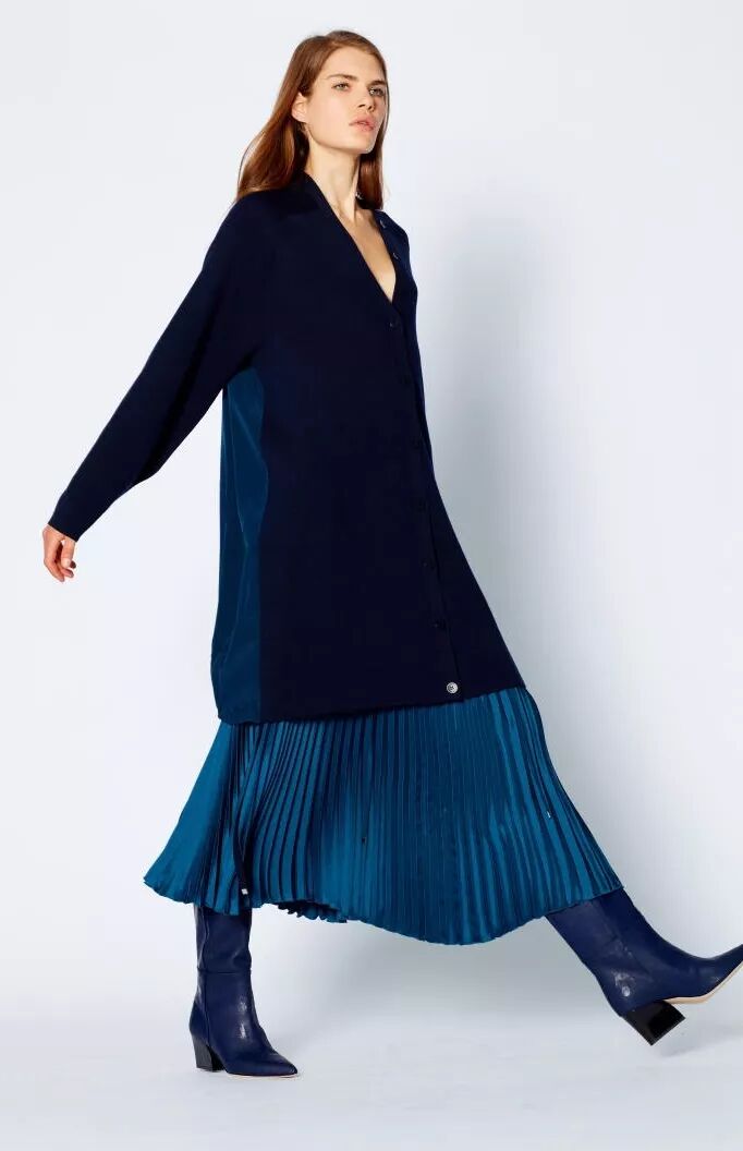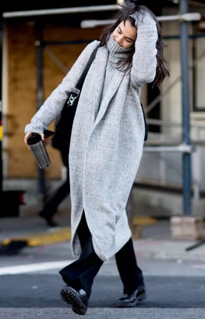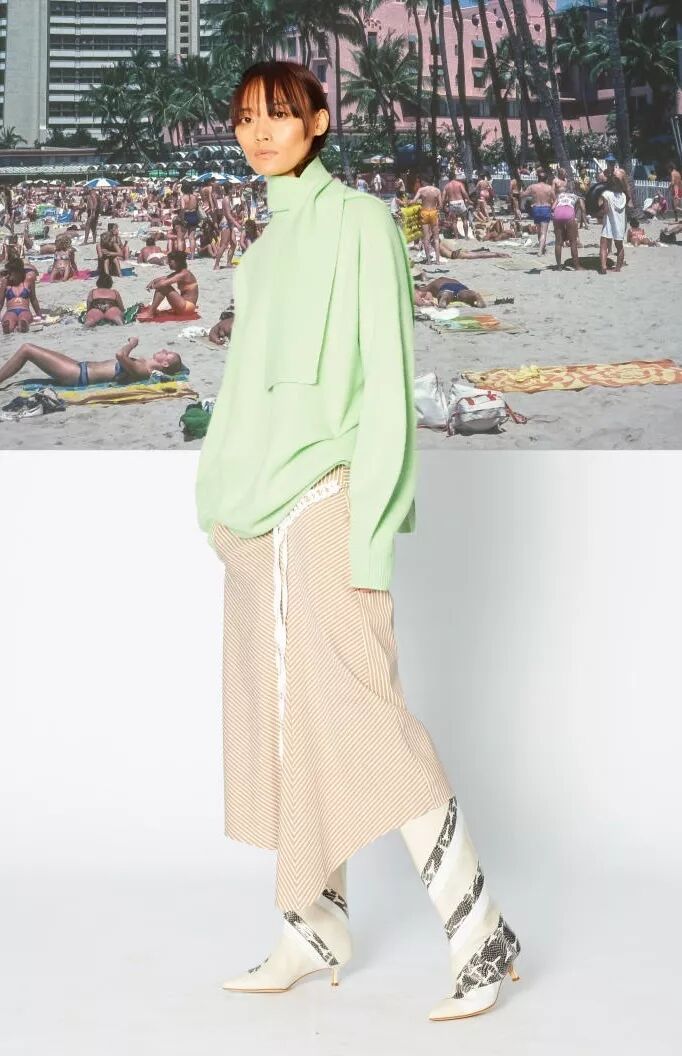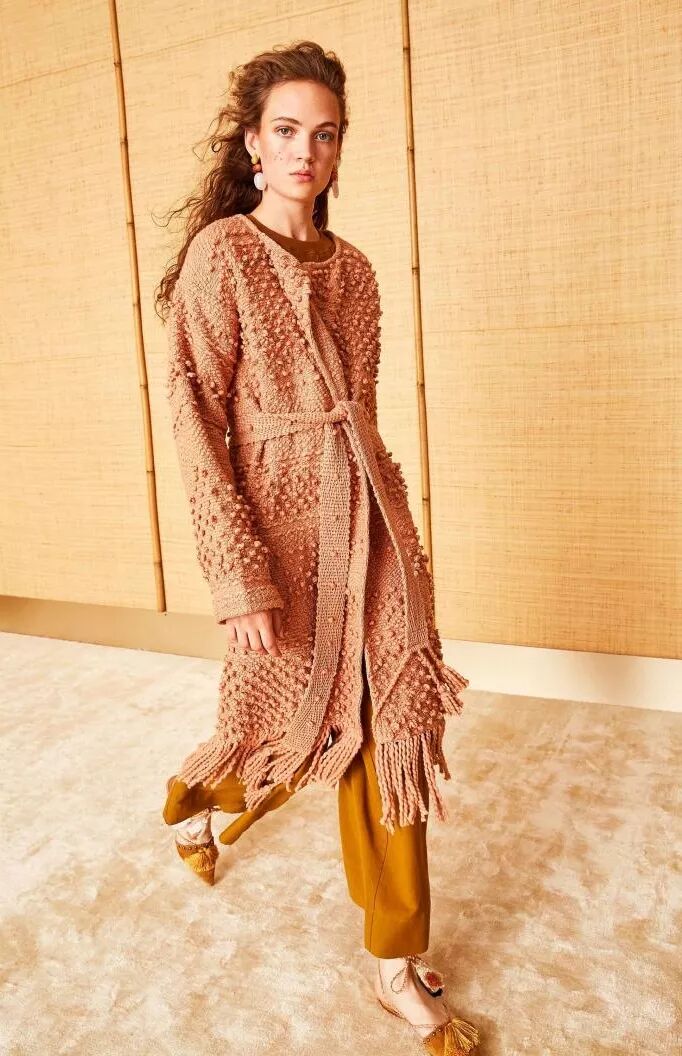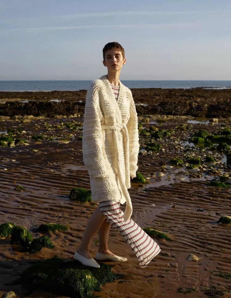 尽管家居工作服不受季节限制,但优化舒适度依然十分重要。量感比例的粗针毛衣、羊毛连衣裙和日常长袍是完美选择。用加长衣袖和开口从大腿贯穿到脚踝的加长款式来突出超大轮廓。