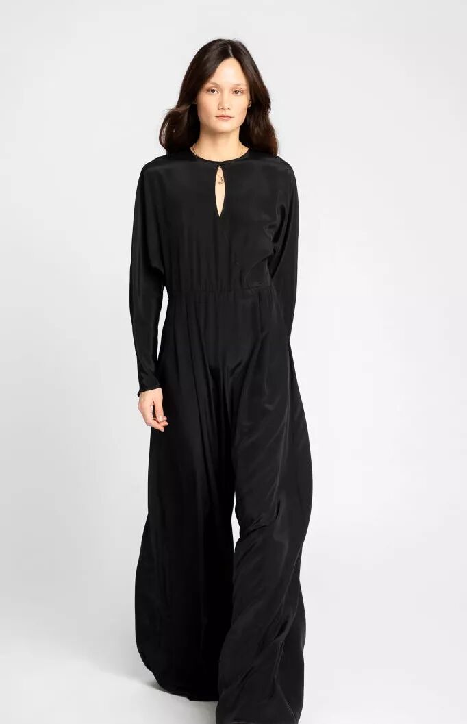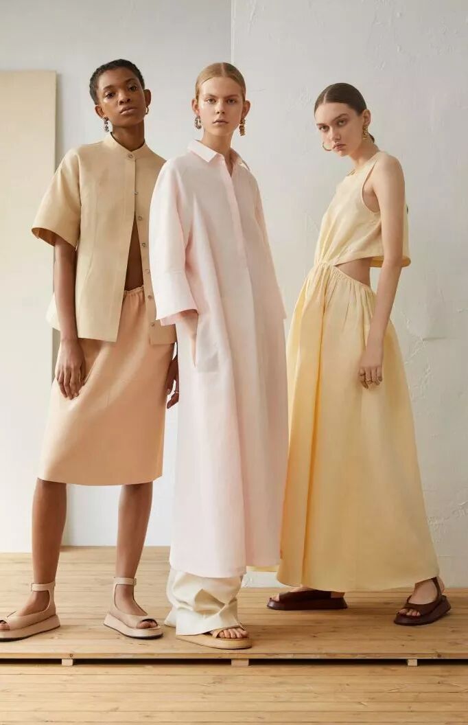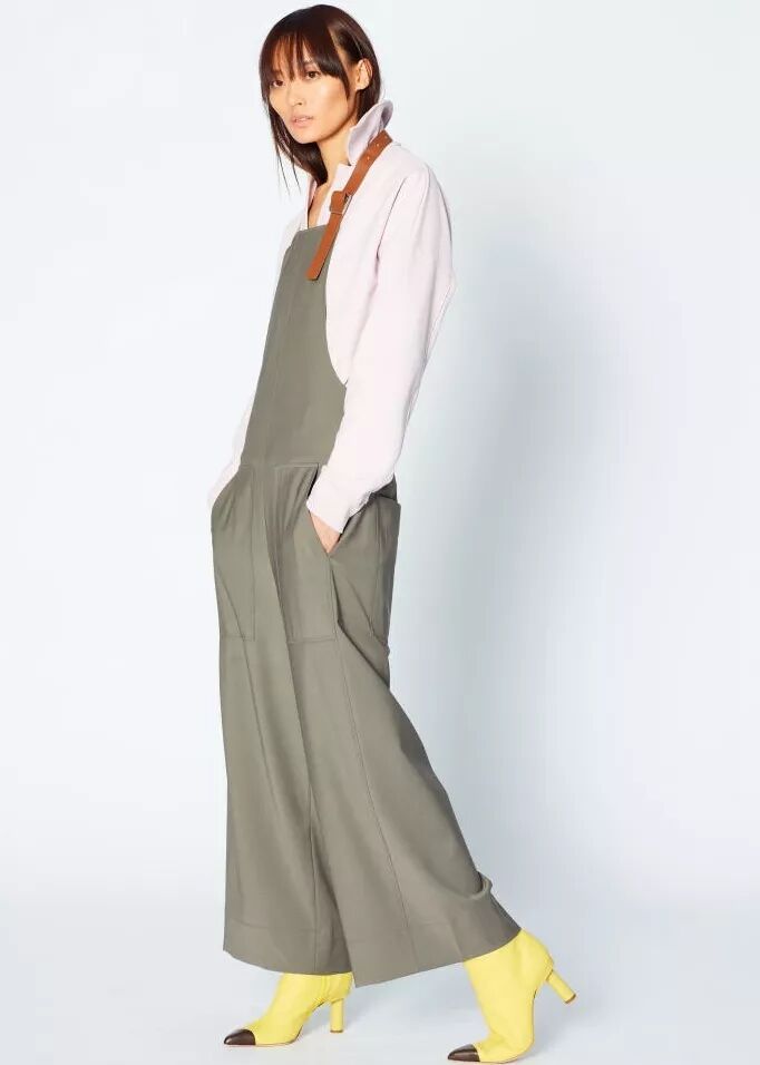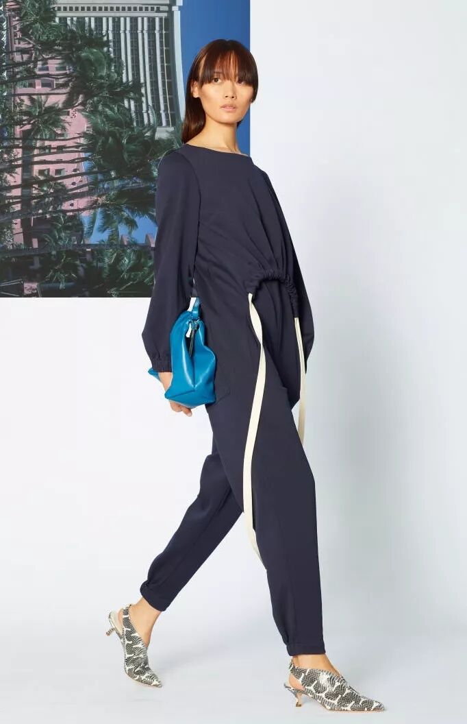 已经成为商业热销款的连体裤也成为人气日益增长的“工作居家两用”造型的单品。它之所以能持续流行,一部分原因是其兼具正装和休闲装魅力。本布腰带、实用口袋和长袖设计是关键。考虑用优质真丝和绸缎作为棉料的替代品。