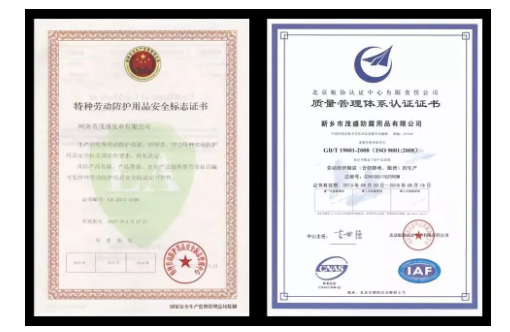 公司产品旗下工装品牌“高茂盛”品牌,被评“河南省著名商标”。公司拥有ISO9001:2008质量管理体系认证、“全国工业生产许可证”和“特种劳动防护安全标志证书”等行业资质认证证书。