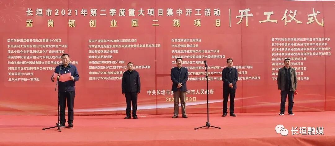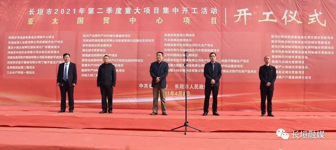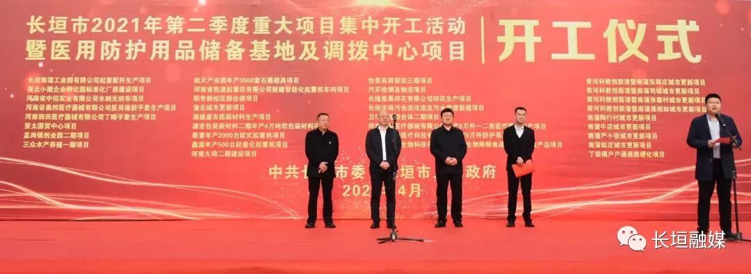 为进一步激发全市抓项目的强大动力,增强发展的新动能,为“十四五”开好局、起好步。4月8日,长垣市举行2021年第二季度重大项目集中开工活动,赵军伟、夏治中、鲁玉魁等市副县级以上领导出席开工仪式。