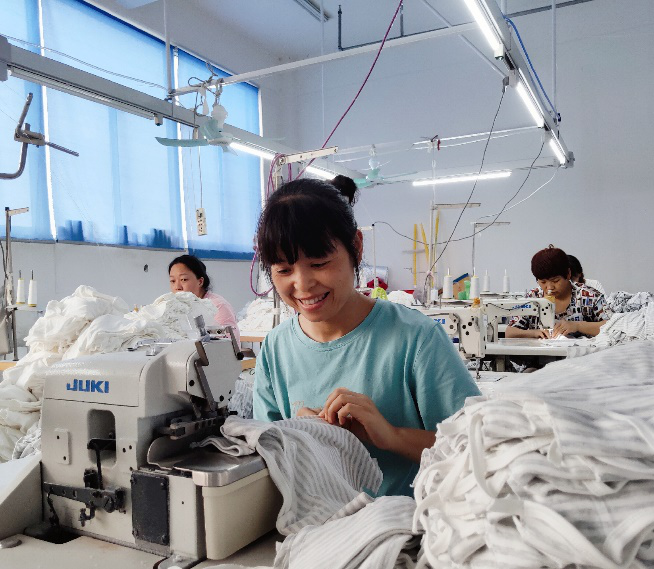 家住西平的孟会珍,从2017年9月来到利丰制衣至今已经四年多。三年间来,她虚心学习,爱岗敬业,从单道工序到学会多种工序并用,从简单的衣片缝制到包缝上袖子、做领子等复杂工艺,从一名普通的车工迅速成长为班组的技术骨干。她乐于助人,以老带新,新来的同事在工作中遇到技术难题,她都毫无保留的传经验授,还帮忙解决机器的小毛病、小问题,工作氛围一团和气;她尊老爱幼、爱护家庭,照顾公婆、教育孩子、认真工作,样样出色。来到利丰制衣的四年,每个月都有稳定的经济收入,真正实现了“一台缝纫机,致富一家人”。