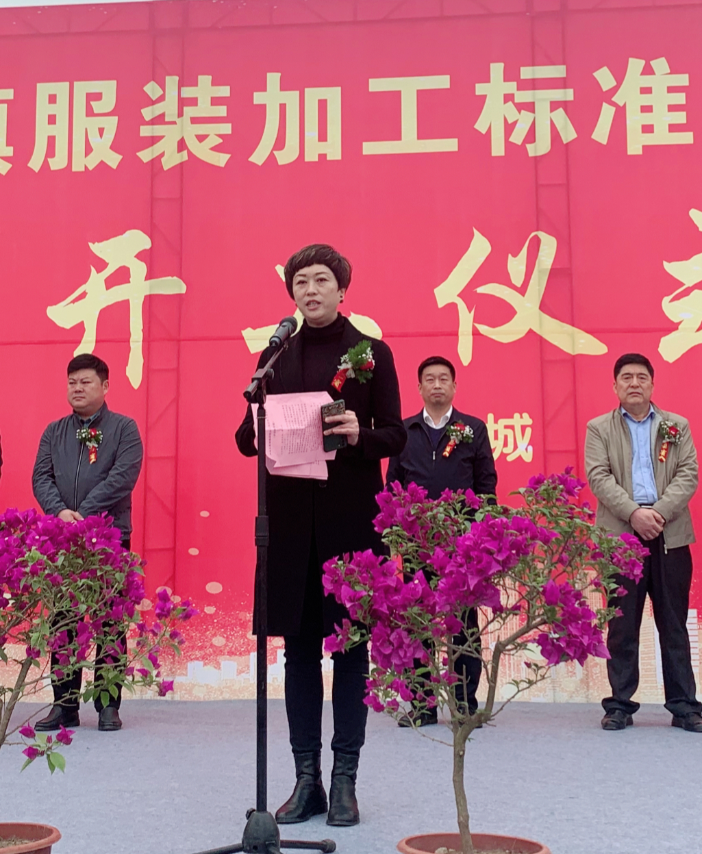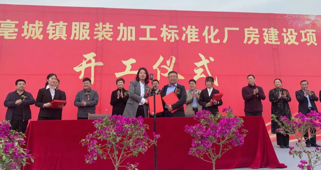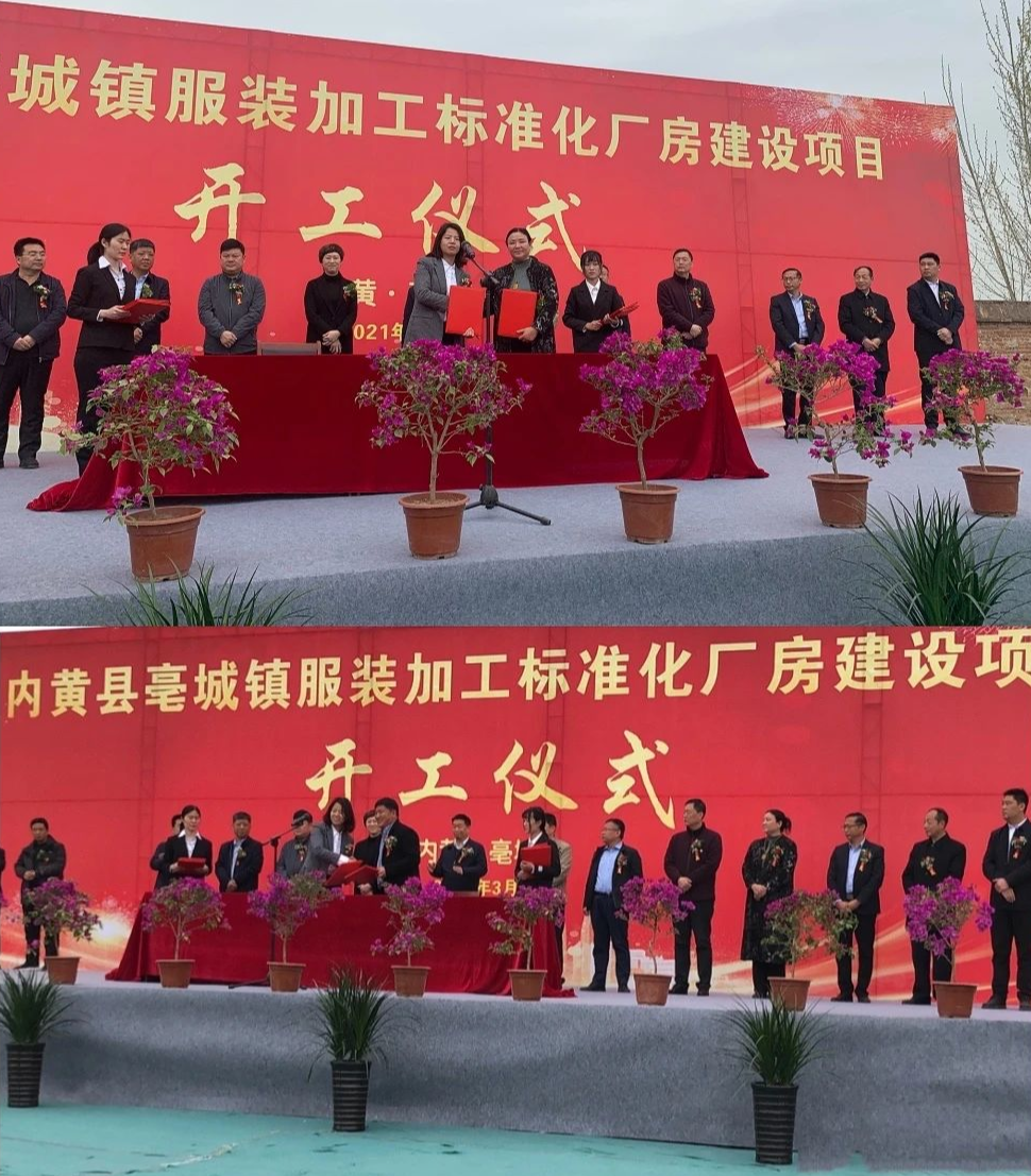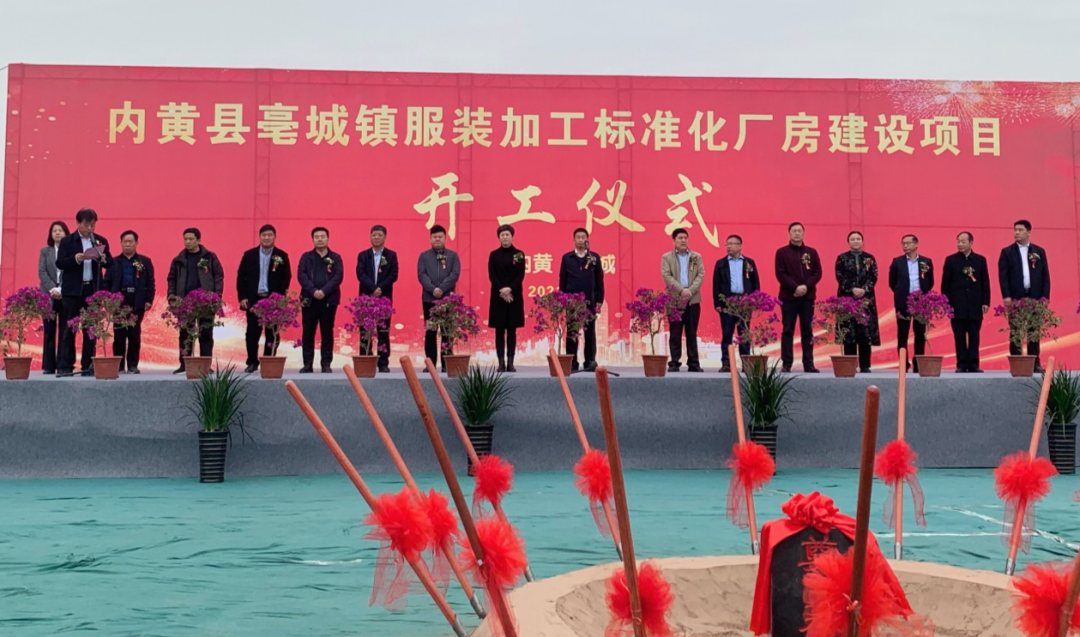 县委常委、副县长阎利宣布内黄县亳城镇服装加工标准化厂房建设项目开工!