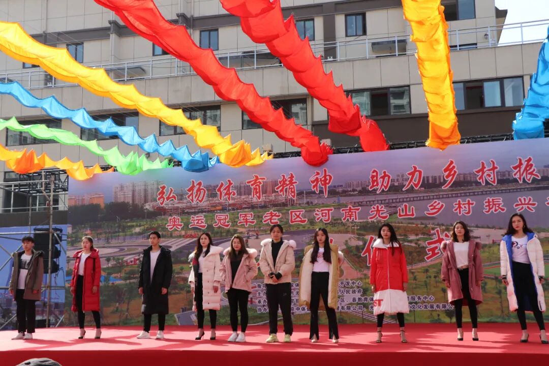 体育承载着国家强盛、民族振兴的梦想,体育强则中国强,国运兴则体育兴。在活动现场,奥运冠军身着光山羽绒自主品牌服装走秀展示,并与光山的体育爱好者进行一场妙趣横生的友谊比赛,亲自指导全民体育健身,他们在赛场和人生道路上展现出顽强拼搏、坚毅不屈的精神让老区人民获益匪浅。