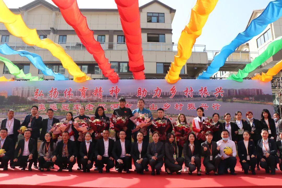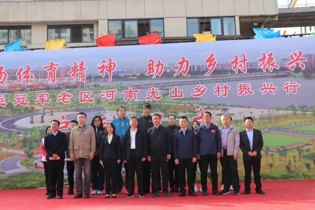 2021年3月28日上午,为贯彻落实习近平总书记视察河南深入信阳革命老区重要讲话精神,推进大别山革命老区乡村振兴和文化旅游体育事业振兴发展,由中共光山县委、光山县人民政府主办的《弘扬体育精神,助力乡村振兴——奥运冠军老区河南光山乡村振兴行启动仪式》在光山羽博城盛大举行!国家体育总局人力资源开发中心副主任匡乐华,河南省体育局党组成员、副局长黄家明,信阳市教体局党组成员、副局长余为宽,信阳市政协副主席、光山县委书记刘勇及光山县四大班子领导、各相关职能部门、各乡镇主要负责同志等出席了启动仪式。篮球世界冠军王立彬、郑海霞,乒乓球奥运冠军乔红,排球奥运冠军宋妮娜,赛艇奥运冠军奚爱华,摔跤奥运冠军王娇,奥运跳水冠军汪皓、周吕鑫,亲临现场指导全民健身,受到广大群众的热烈欢迎!