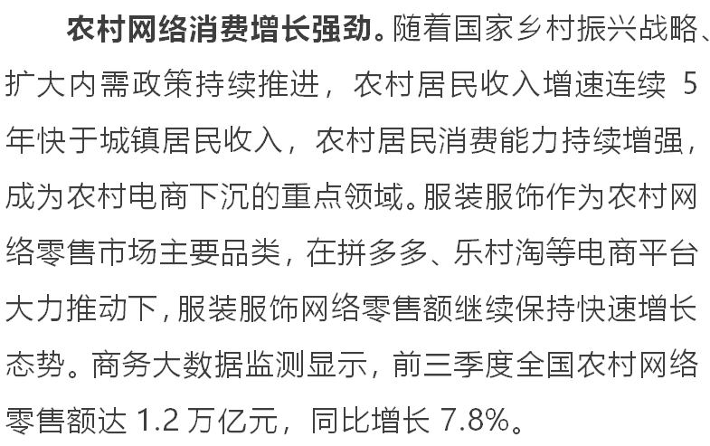 (四)服装农村电商蓬勃发展,畅通城乡双向内循环