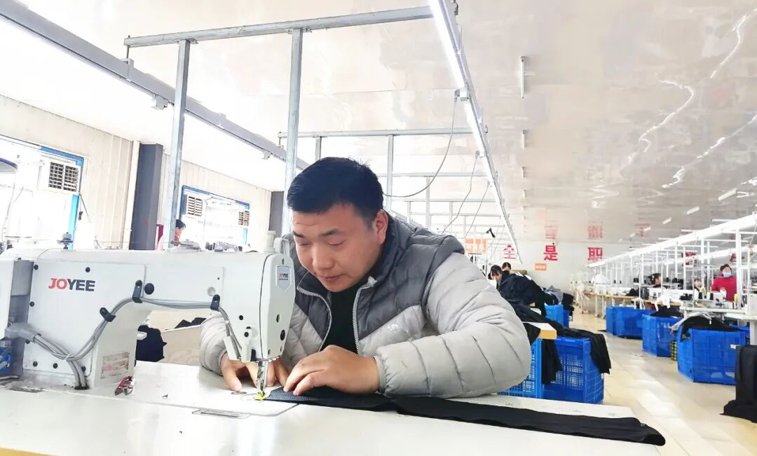 在老乡的介绍下,冯文成来到了今年新投产的河南兴宇羽绒制品有限公司。由于手速快,做工细,还会做四季服装,冯文成被同车间的巧媳妇们笑称为“老师儿”。冯文成对这个称谓欣然接受,有新手来培训时,他也非常乐意“传授”两招儿。谈到在家乡工作的感受时,冯文成笑着说到,“外面虽然能挣到高薪,但都是拿长时间的加班换来的,与在家上班不同的是,外面的花销特别大,特别是男人在外面,喝酒、吃饭、交际这些花销都少不了,能攒下来一半的钱就不错了。在县城上班,家里有什么事,晚上下班回家就知道。去年秋天,家里有急事需要我回来,我连夜乘坐高铁回家,又累又费钱,结果还是来不及。那时,我就在想,我要是在家附近上班就好了”。听冯文成这样一说,周围几个也在南方打过工的巧媳妇们连连点头,表示赞同。