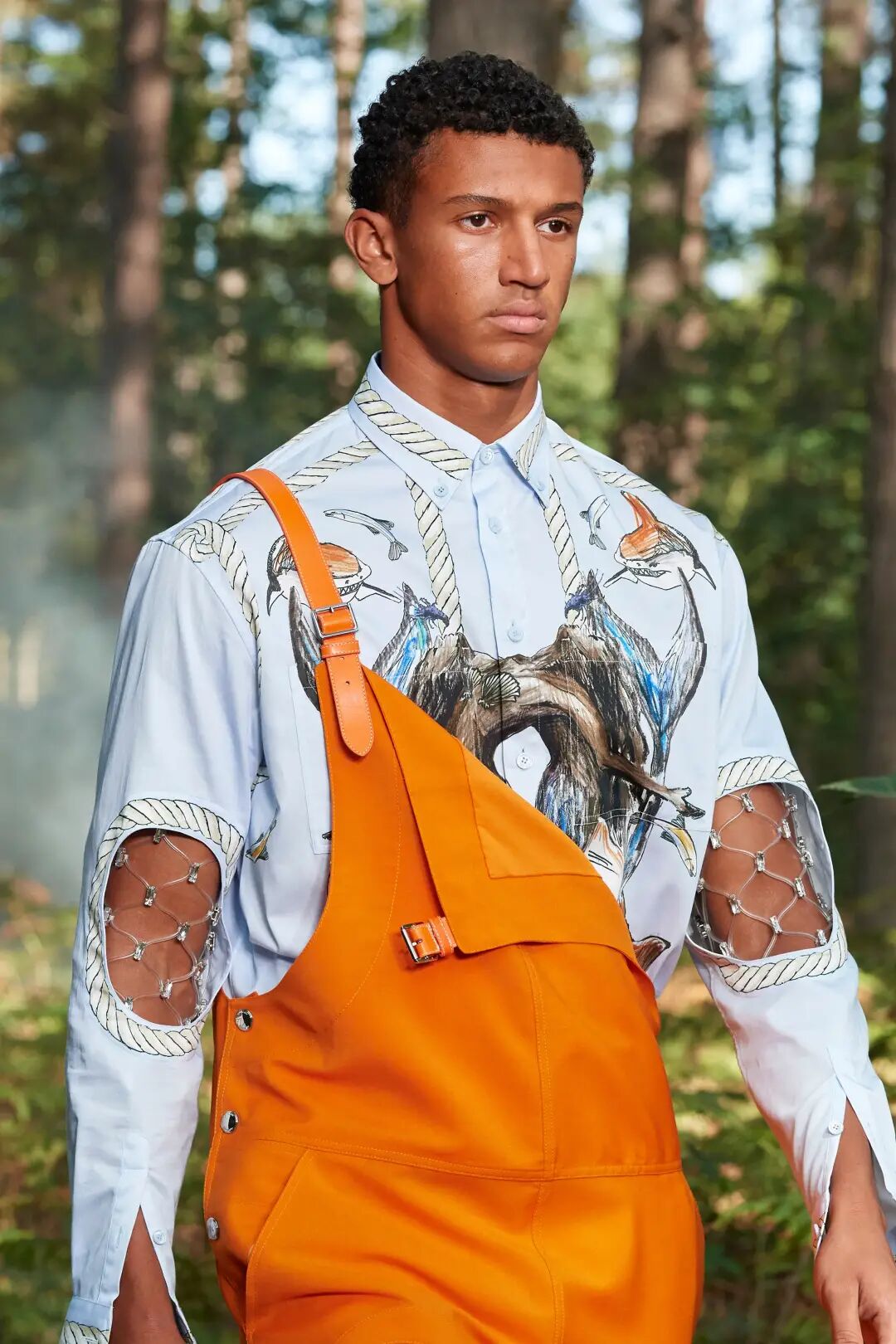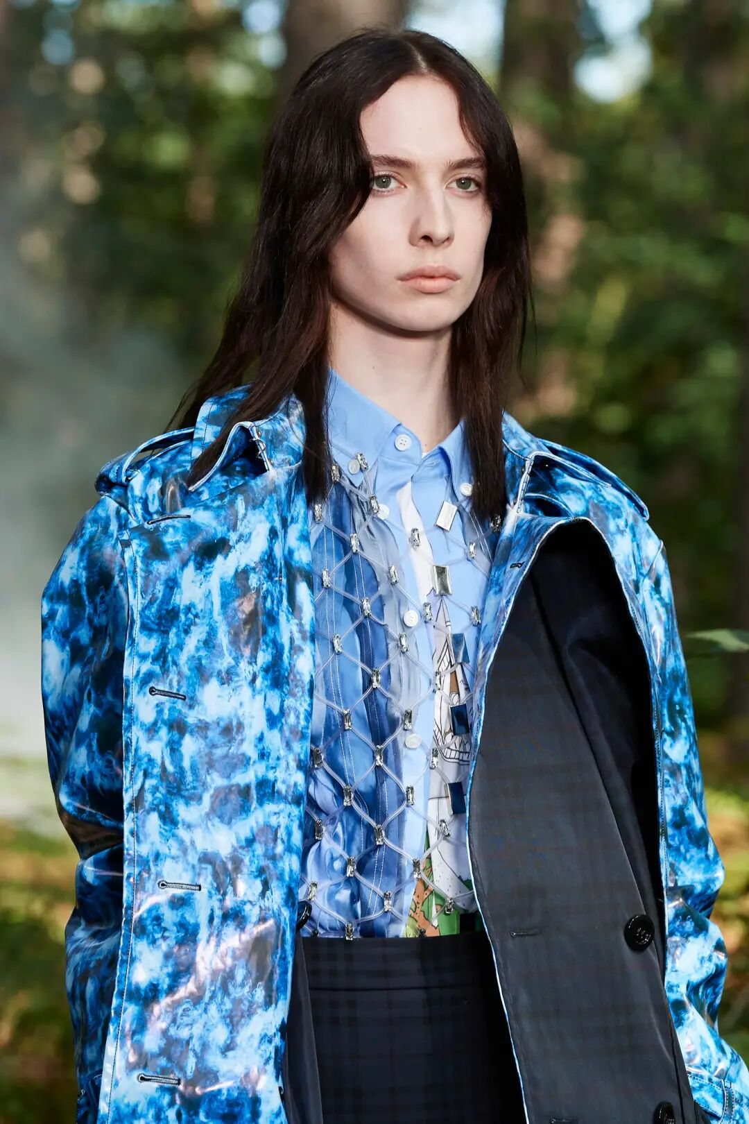 令时髦人士又爱又恨的网格元素再次“跃”上本季时装周。创意总监Riccardo Tisci以「水、海洋、永恒」为关键词发表的BURBERRY 2021年春夏系列中,就采用了镶嵌着水晶的网格元素,搭配防水风衣、衬衫等结构感强烈的时装,勾勒出与自然海洋并存的神秘气息。