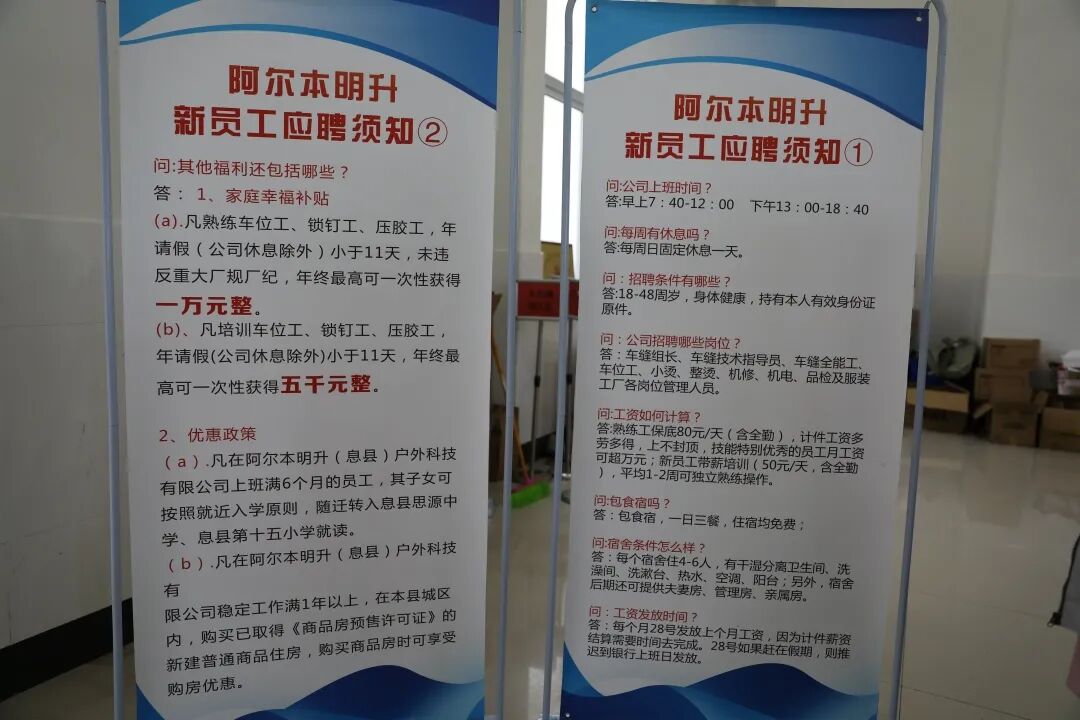 以工位换学位,以工龄换房价,公司有年终奖,新入职员工有带薪培训等福利。如今阿尔本(息县)科技服饰有限公司有1500名员工,公司订单充足,员工干劲十足!
