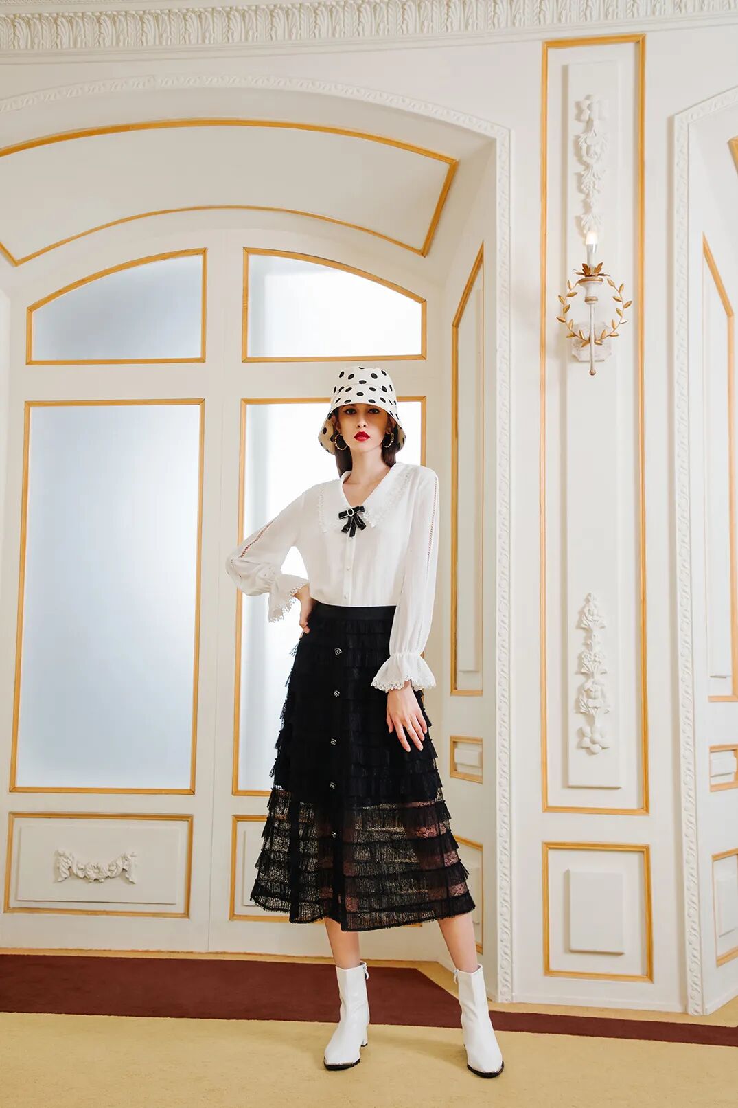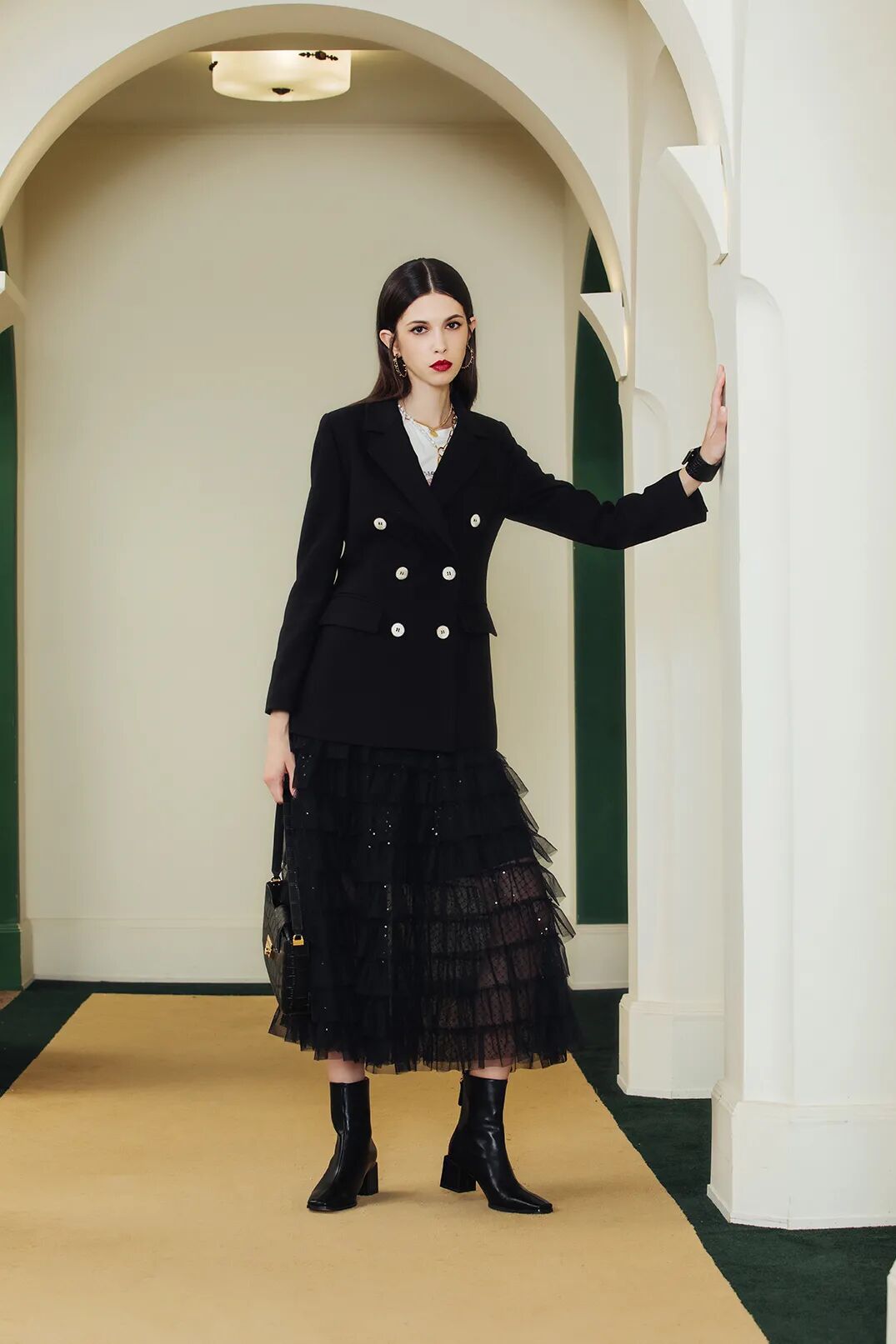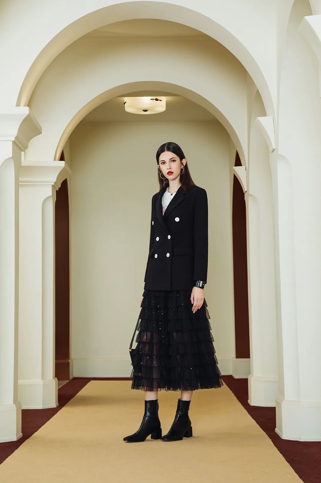 对于“女王”的定义,多数被联想到的无非是高冷、气场强、好强等等带有强烈性格色彩的词汇。可谁规定女王非得是这般人设?一件复古又时髦的黑西装搭配仙气十足的网纱裙,照样可以做个娘man十足的女王。