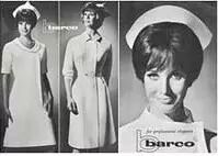 护士服的领口“打开了”,其中以“彼得潘式”(Peter-pan Styled)的小翻领最为盛行。这个时期护士服腰带的纽扣被移到前面,整体裁剪更加合身,还出现了一次性的护士帽。