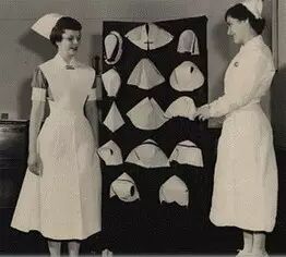 1936年,南丁格尔去世11年之后,护士帽开始变得千奇百怪,几乎每所护士学校都设计了自己的 “校帽”。这个时期大多数护士帽都很小,更像是一件配饰,是护士职业的象征。