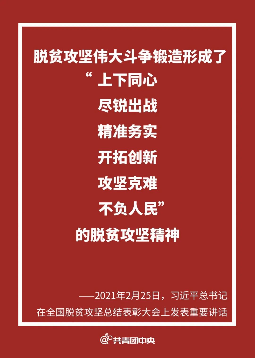 会上,习近平总书记庄严宣告:经过全党全国各族人民共同努力,在迎来中国共产党成立一百周年的重要时刻,我国脱贫攻坚战取得全面胜利,现行标准下9899万农村贫困人口全部脱贫,832个贫困县全部摘帽,12.8万个贫困村全部出列,区域性整体贫困得到解决,完成了消除绝对贫困的艰巨任务,创造了又一个彪炳史册的人间奇迹!这是中国人民的伟大光荣,是中国共产党的伟大光荣,是中华民族的伟大光荣!