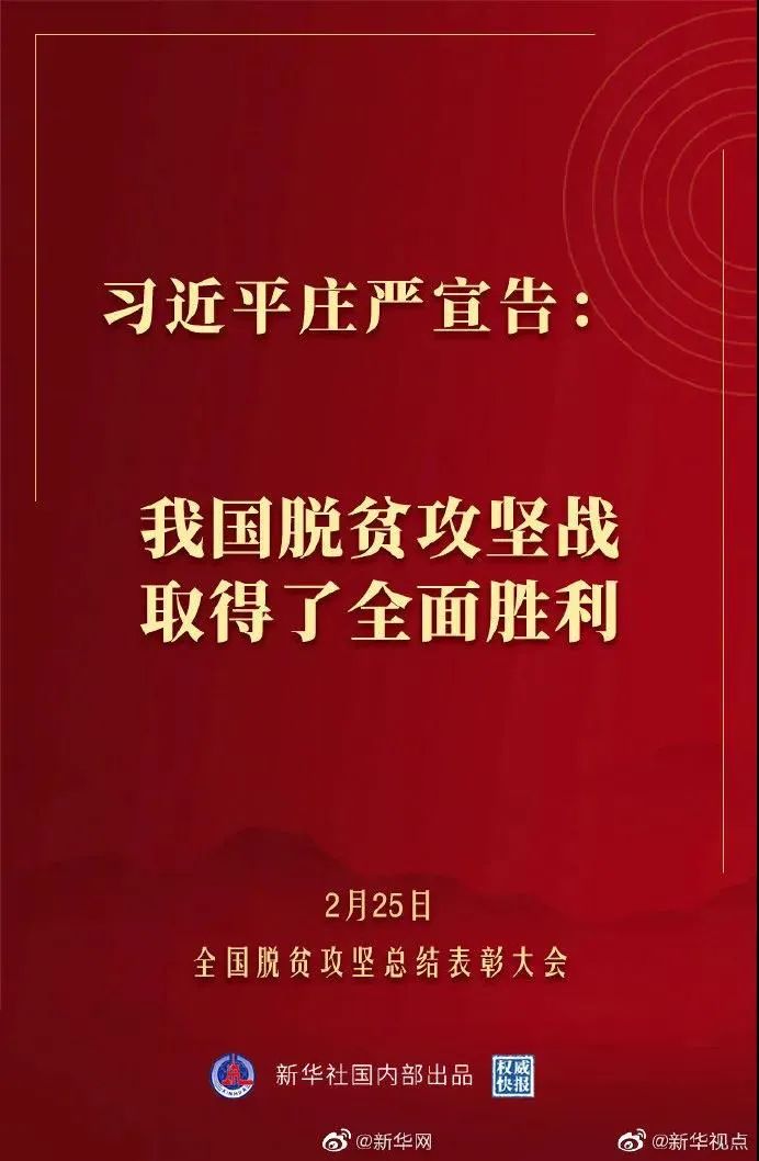 2月25日,全国脱贫攻坚总结表彰大会在北京人民大会堂隆重举行。中共中央总书记、国家主席、中央军委主席习近平向全国脱贫攻坚楷模荣誉称号获得者颁奖并发表重要讲话。